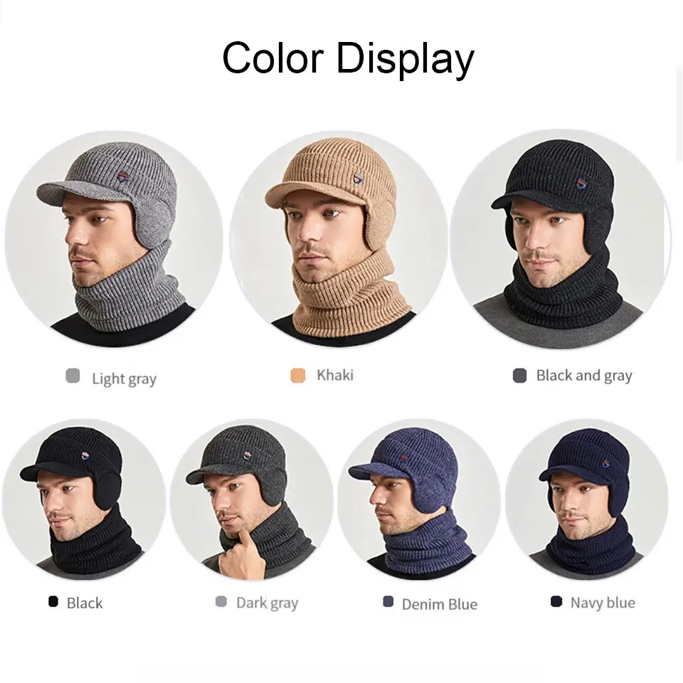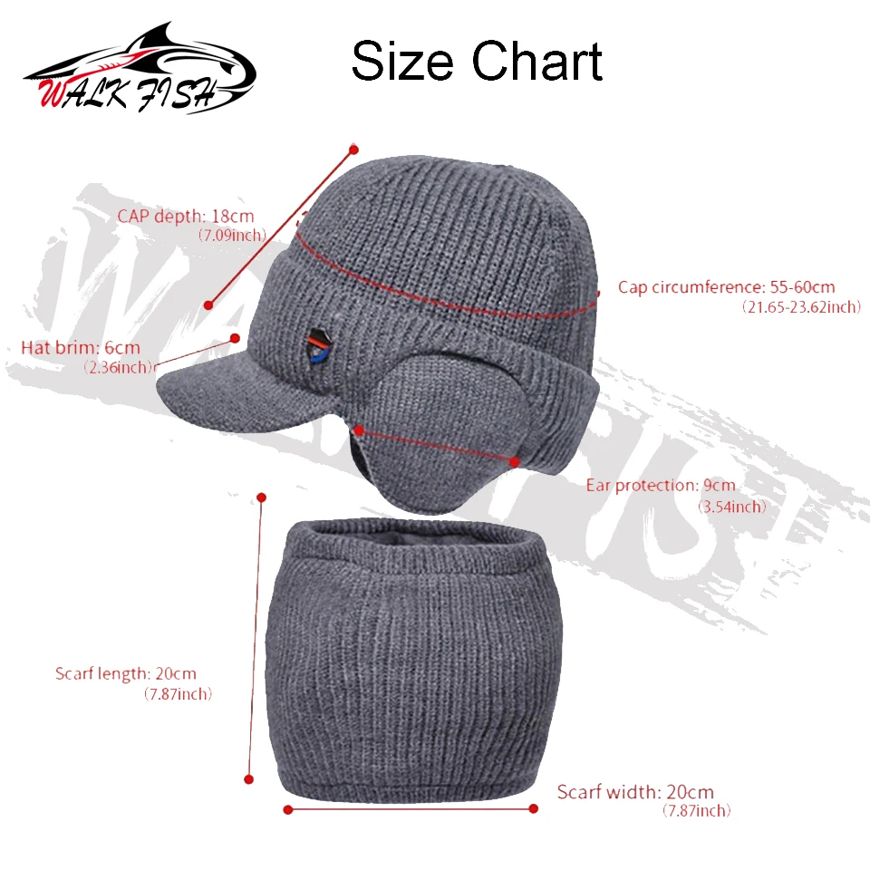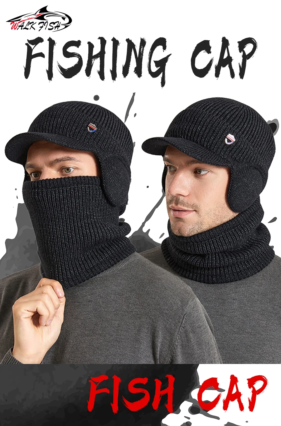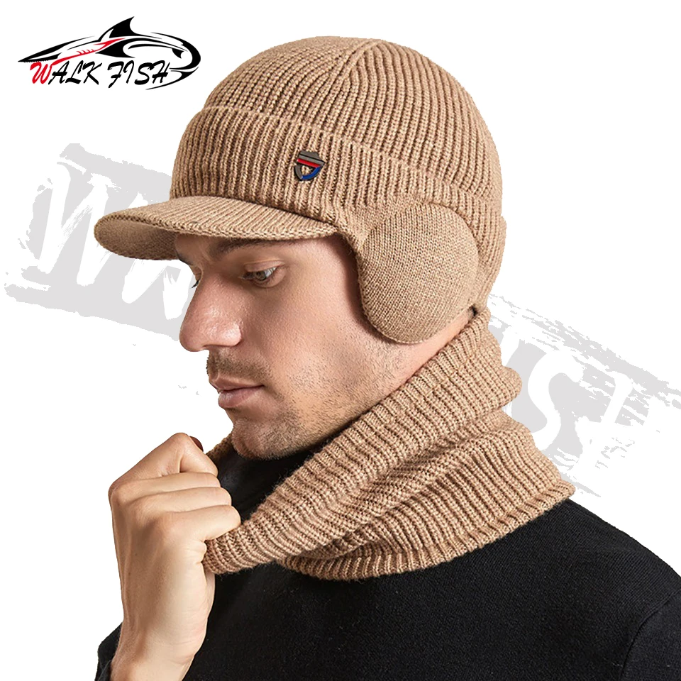 WALK FISH invierno pesca calidez protección para los oídos sombrero bufanda conjunto con gorro de terciopelo Unisex esquí a prueba de viento Jersey sombrero de punto