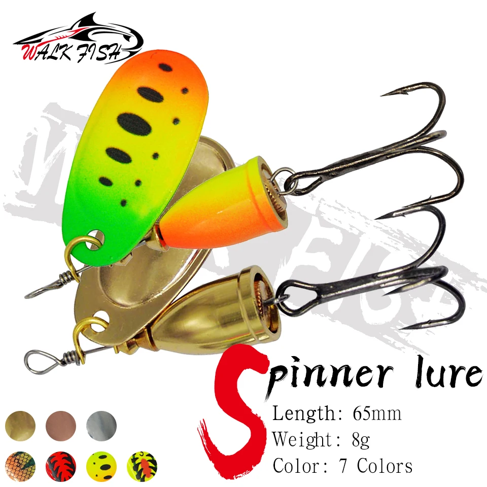 WALK FISH Spinnerbait Señuelo de pesca Cuchara que se hunde Spinner de metal 8g Trucha Anzuelo triple Isca Wobbler Alimentador para Lucio Bass Bait