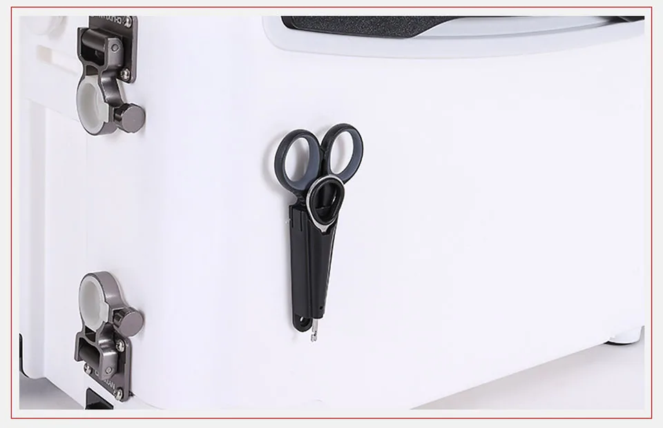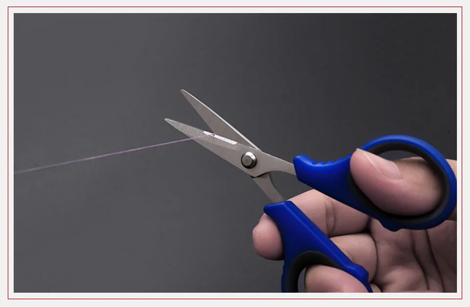 El cortador dentado antideslizante facilita el corte de la línea de pesca