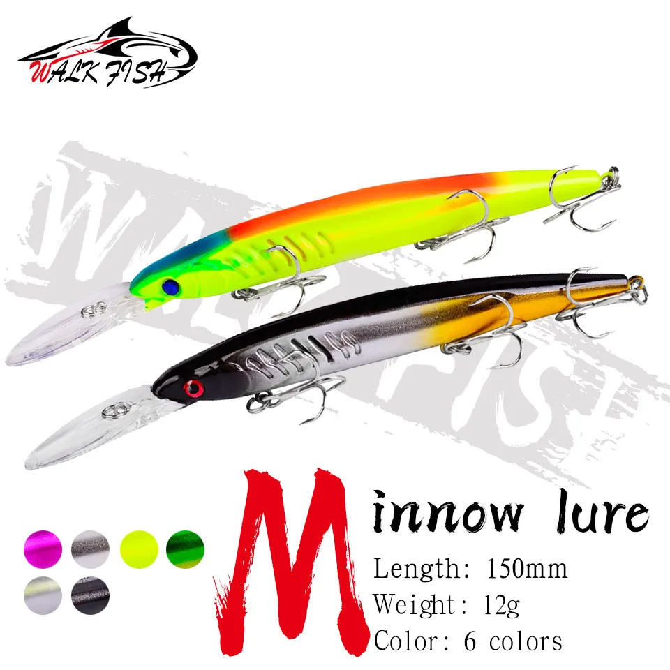 WALK pescado Artificial-Cebo duro para pesca de Lucio, señuelo de pececillo negro de 152mm, 12g con gancho 6 #, Wobbler, equipo de pesca de carpa, Crankbait