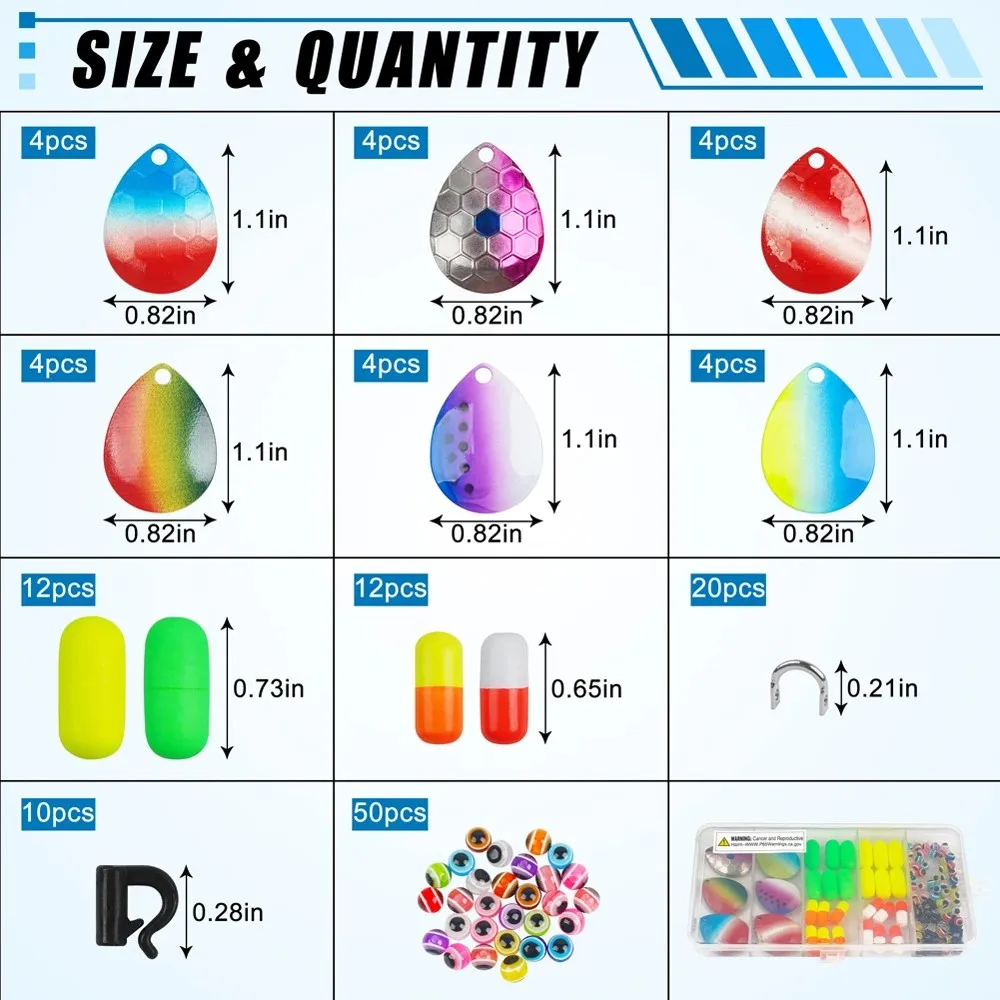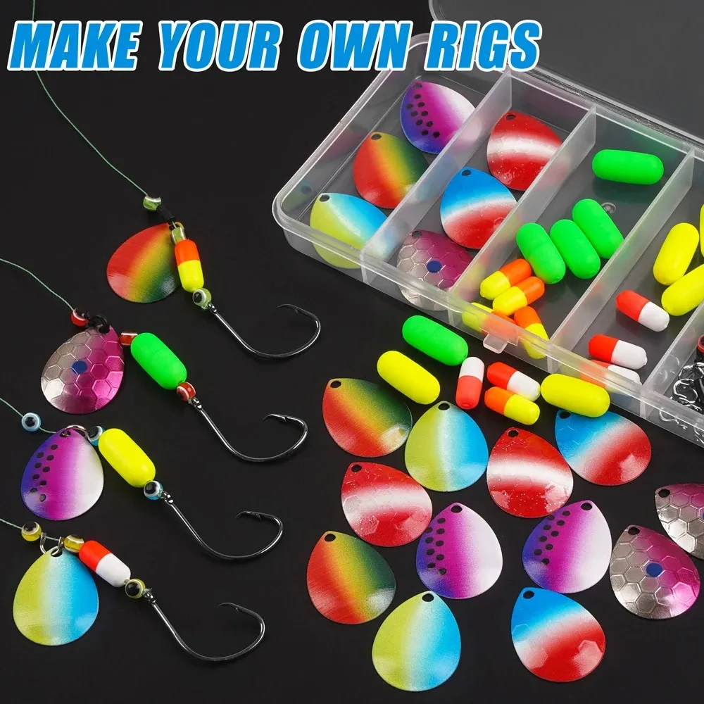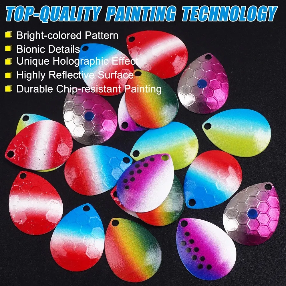 Cuchillas giratorias: cuchillas coloradas especialmente seleccionadas con patrones y colores probados para aumentar el atractivo de su plataforma, y diseño de giro fácil que produce reflejos y vibraciones completos bajo el agua.