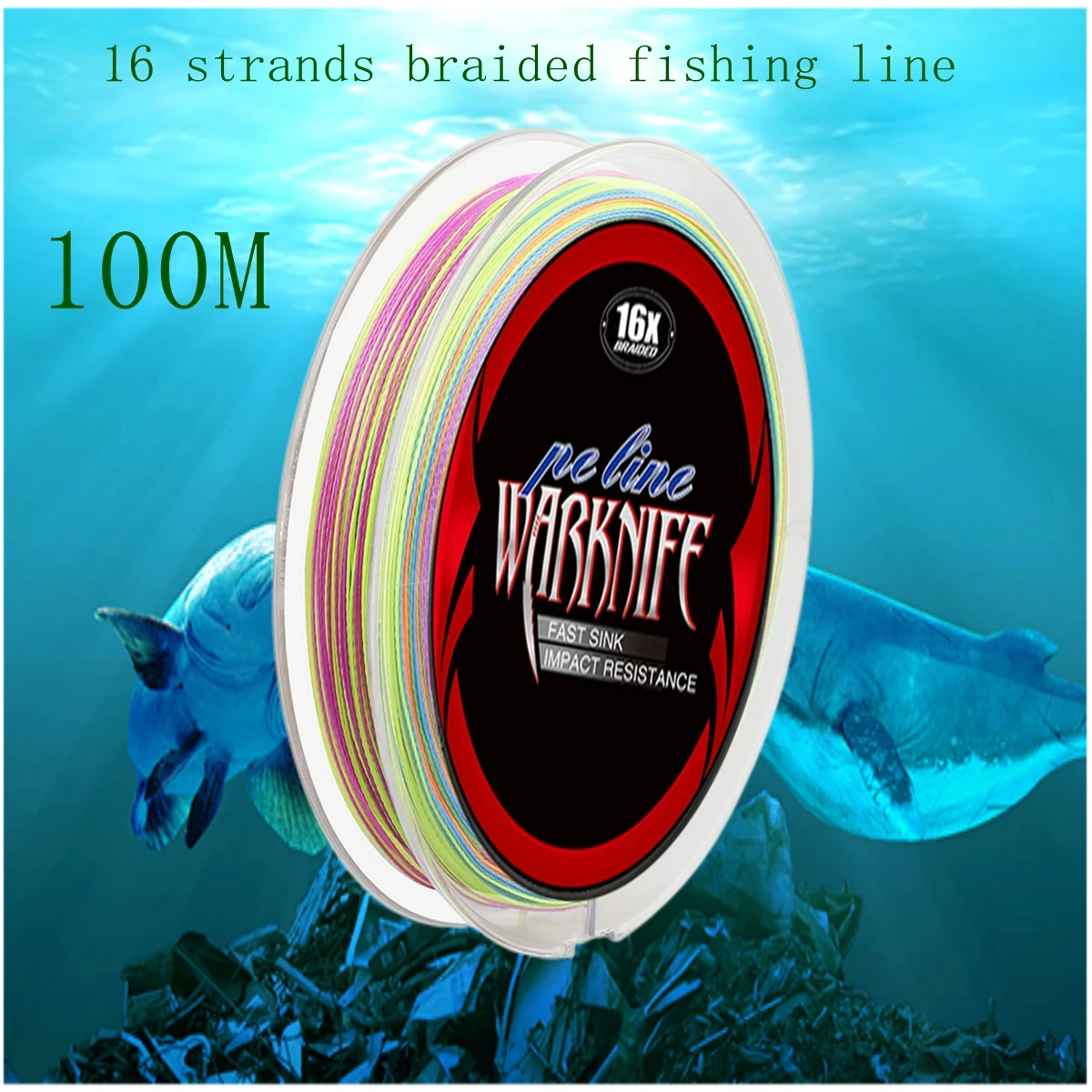 Warknife 16 hebras 100M núcleo hueco 100% PE línea de pesca trenzada extrema 20LBs-400LBs línea de ganchos de asistencia MulticolorCaracterísticas:- Última tecnología de fabricación