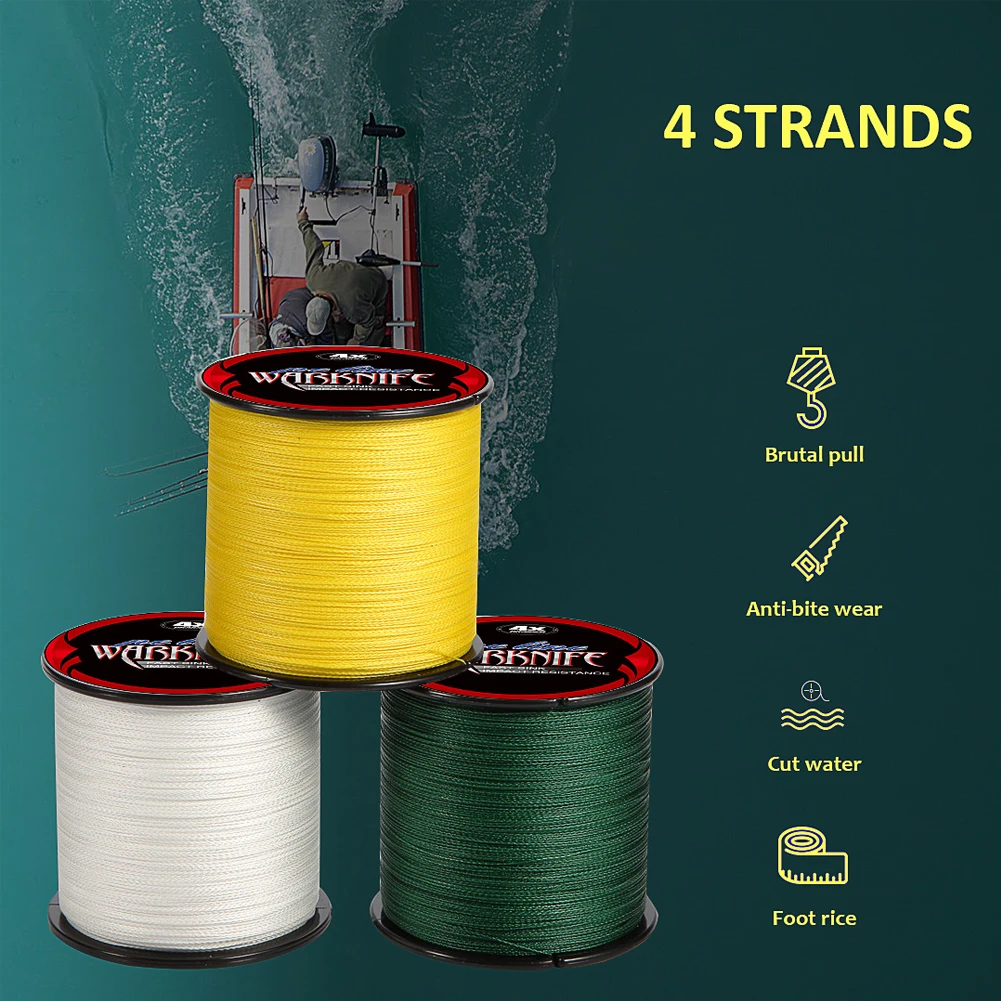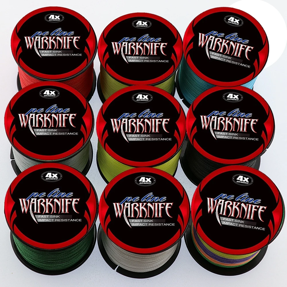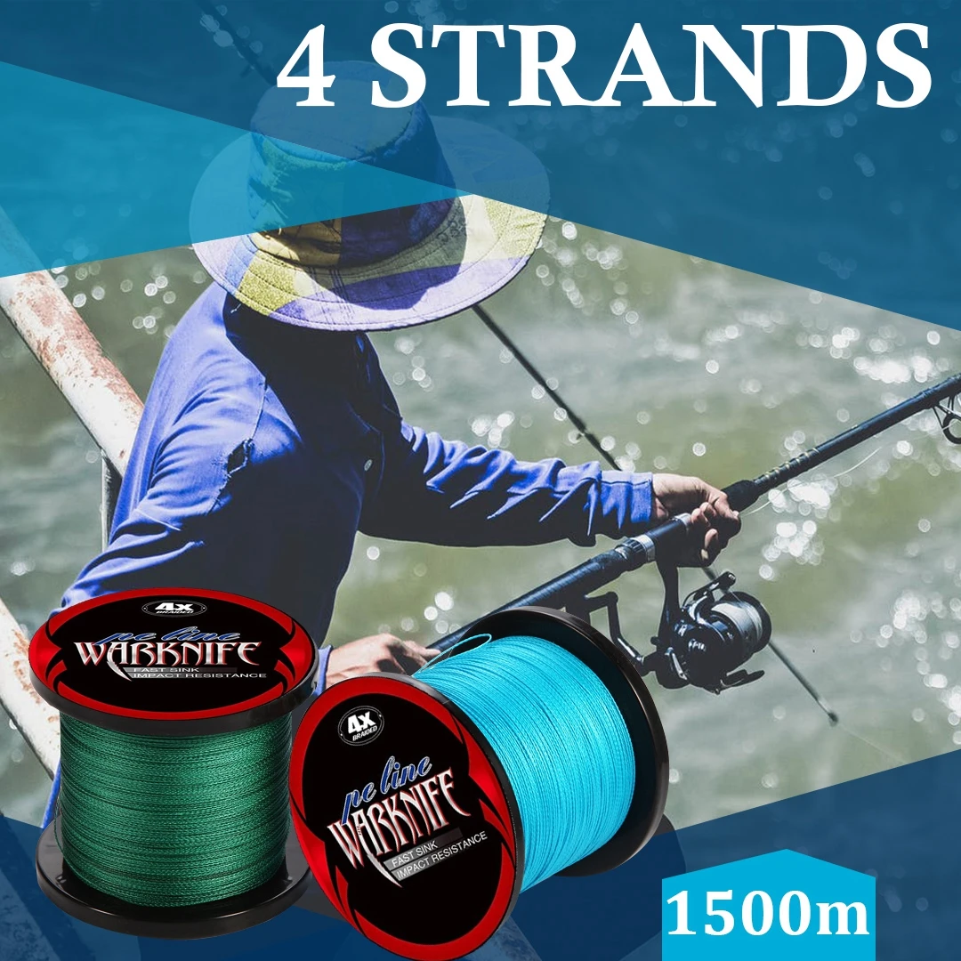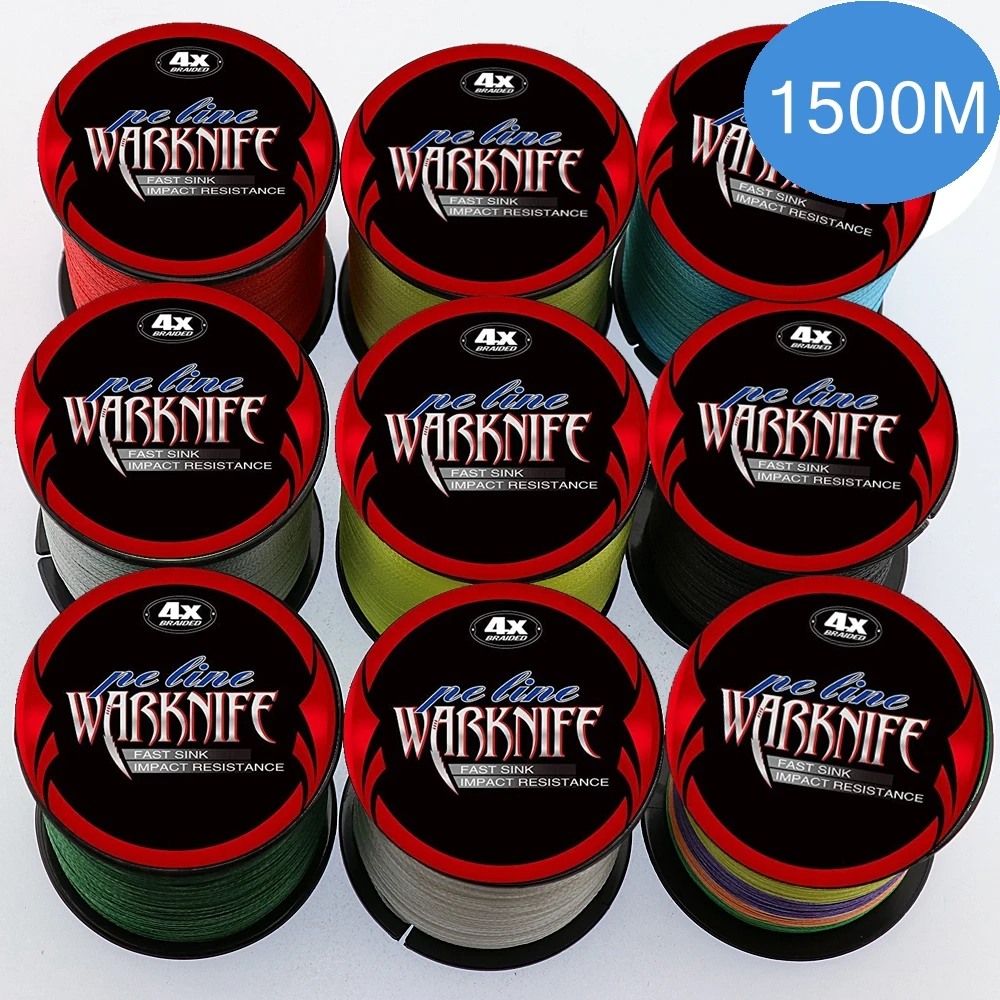Warknife-Hilo de pescar trenzado, multifilamento para pesca de carpa, PE, agua salada, 2-100lb, 4 hebras, 1500M, 4 tejidos