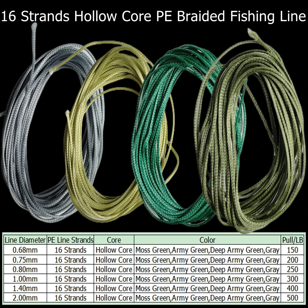 Warknife 16 hebras 10 metros de línea de núcleo hueco PE para ayudar anzuelo de pesca de agua salada anzuelo de pesca DIY pesca de arrastre señuelo atado líneaDetalles del producto:Trenza de PE, línea trenzada