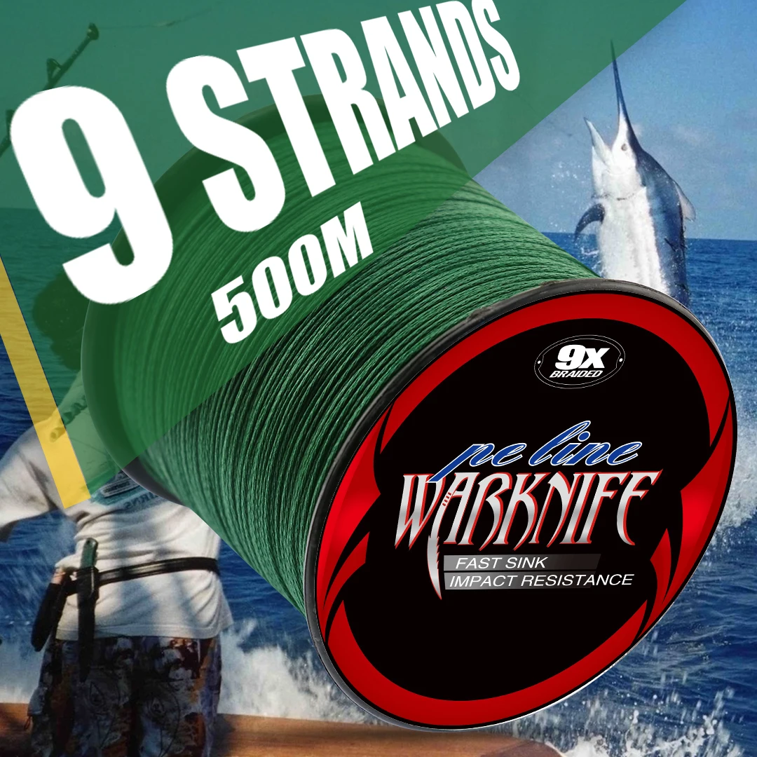 Warknife-sedal de pesca de PE fuerte de 9 hebras, hilo de pesca de 500M, multifilamento, herramienta de línea de pesca de carpa, hilo trenzado
