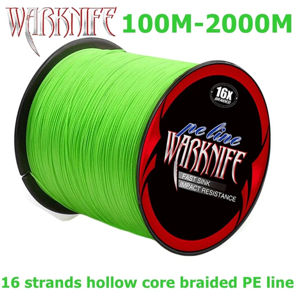 Warknife 16 hebras 100M - 2000M núcleo hueco PE Extreme Japan línea de pesca trenzada 20LBs-500LBs Línea de asistencia verde fluorescenteCaracterísticas:- Nueva tecnología de fabricación