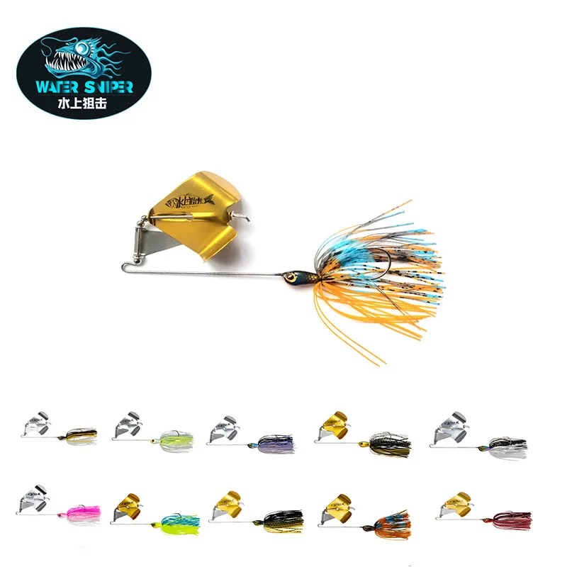 FRANCOTIRADOR DE AGUA 7G 10g 14g Topwater Tractor Señuelo de metal Buzzbait SpinnerBaits Falda de goma Cola Pesca Cebo duro