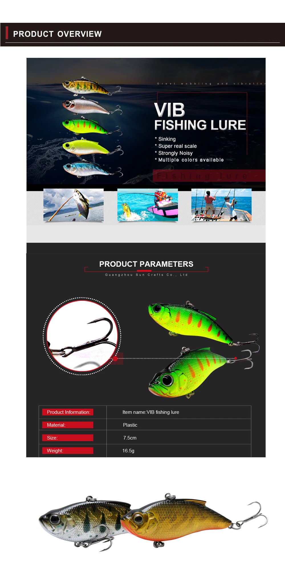 WATERBOY-señuelo VIB de 7,5cm y 16,5g, señuelo de pesca Artificial duro, vibración sin labios, nuevo plástico, sonajero ruidoso, señuelo vibrador que se hunde