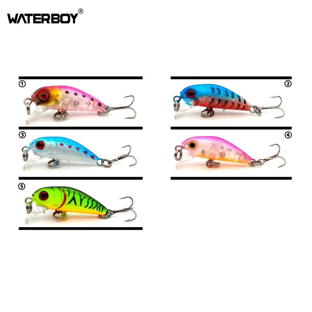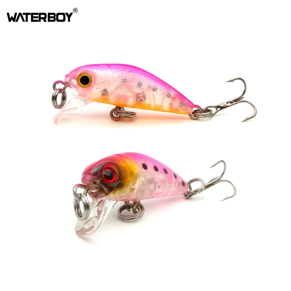 Waterboy Mini Crankbait Minnow señuelo 3,5 cm 1.4in 2G 0,1 oz cebo artificial duro 5 colores tamaño pequeño manivela Señuelos de Pesca hotsaleNuevo modelo Iscas Fish Wobblers Swimbait Peche