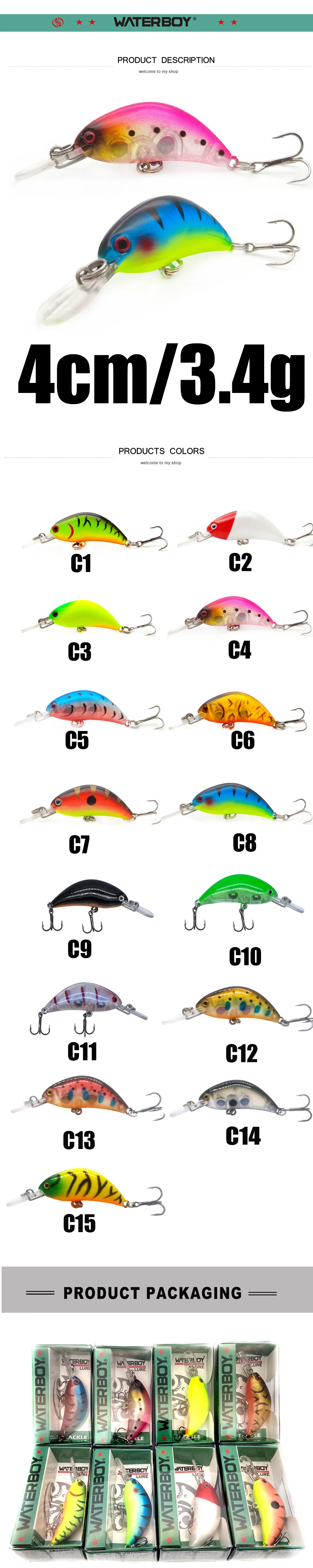 Waterboy Mini señuelo de manivela Minnow cebo 4 cm 1,6 pulgadas 3,4 g 0,1 oz cebo artefacle duro 5 colores tamaño pequeño señuelo de pesca de manivela gran oferta Nuevo modelo Iscas Fish Wobblers Swimbait Peche
