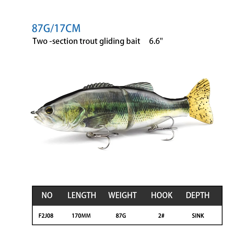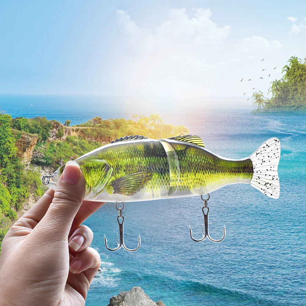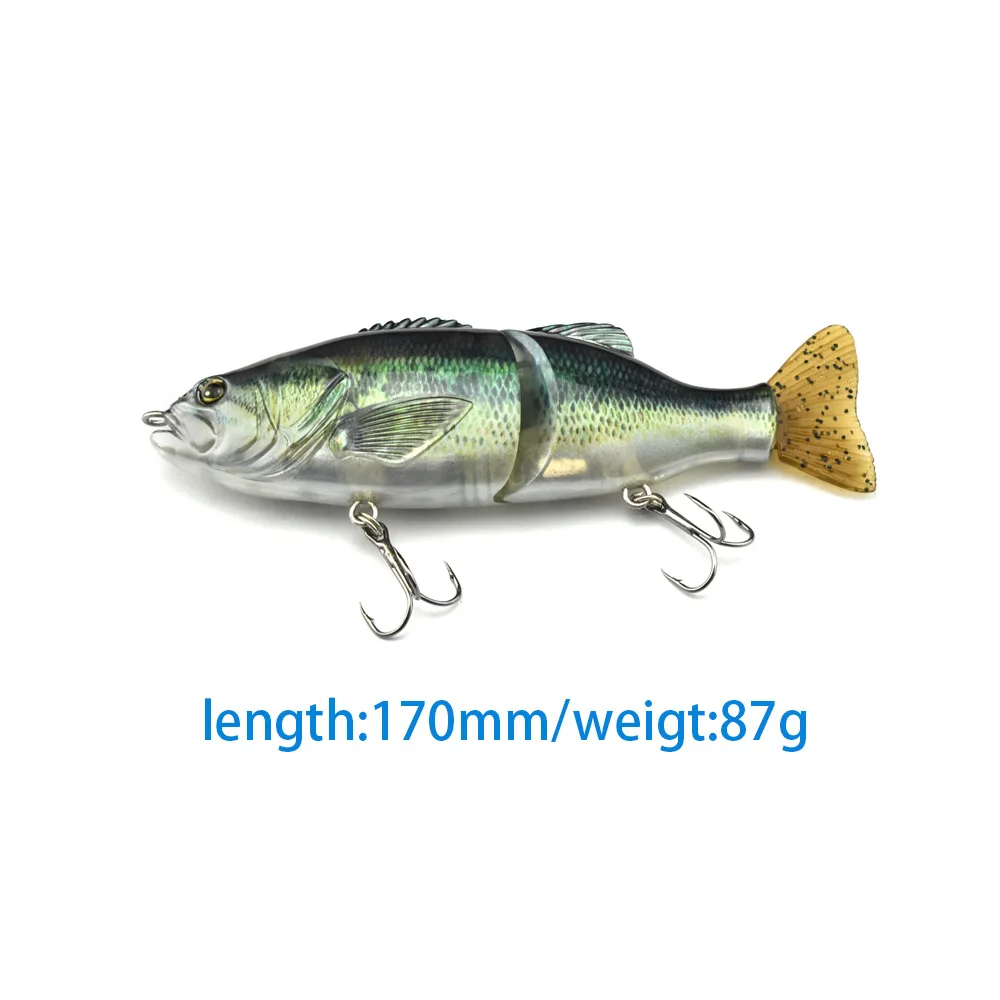 Tipo de señuelo: cebos de pesca artificiales multiarticulados de 2 segmentos con 2 anzuelos triples, movimiento de natación S a cualquier velocidad