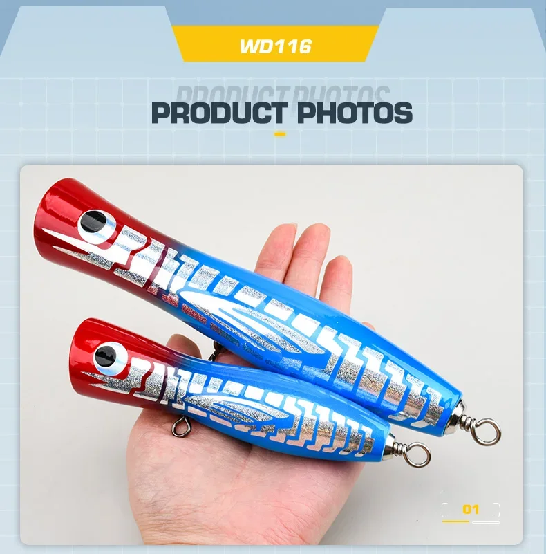 TEASER WD116 80g Topwater Wood Popper señuelo de agua salada carpa SwimBait señuelo de pesca en el mar de madera Popper cebo con triple gancho