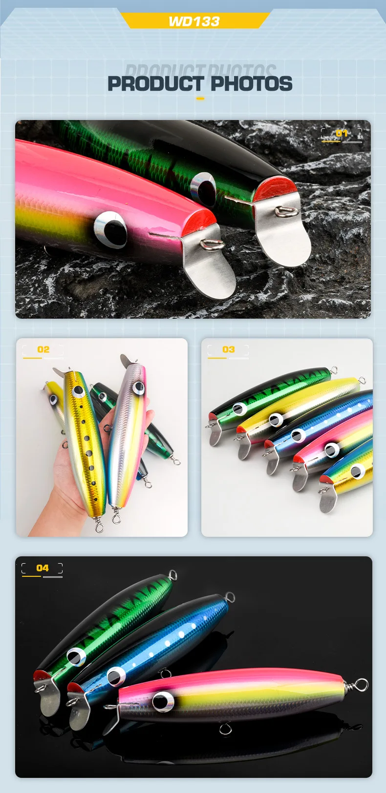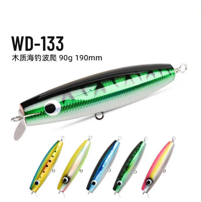 WD133 ± 90g/19,5 cm señuelo Popper de madera hecho a mano pesca en el mar ceboTopwater Swimbait GT superficie duradera Popping Jigging señuelo