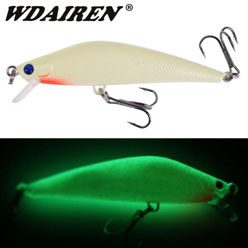 Señuelos luminosos 3D WDAIREN de Minnow de 8cm 8g de pesca nocturna Wobbler Crankbait aparejos de cebo duro Artificial con señuelo entallado Isca Swimbait