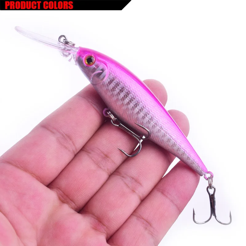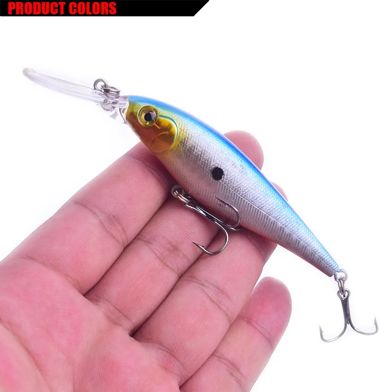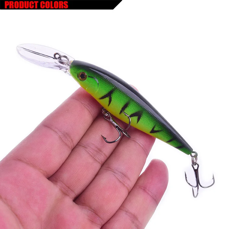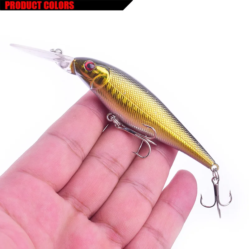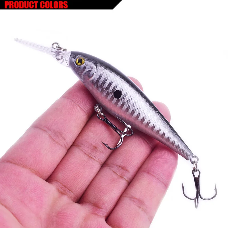 Marca: WDAIREN Tipo de señuelo: Minnow longitud del señuelo duro: 11cm peso: 10g Profundidad de buceo: 0,2-1,5 M Color: 10 colores diferentes gancho: 6 # anzuelo triple afilado Material: bola de acero de plástico/ruido contenido del paquete: 1 señuelo de pesca