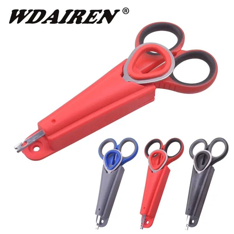WDAIREN-tijeras de pesca, caja de almacenamiento, línea trenzada, cortador de señuelos, tijeras de uso de pescado, herramientas de pesca portátiles multifunción