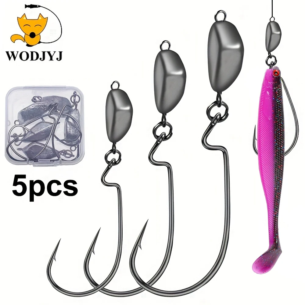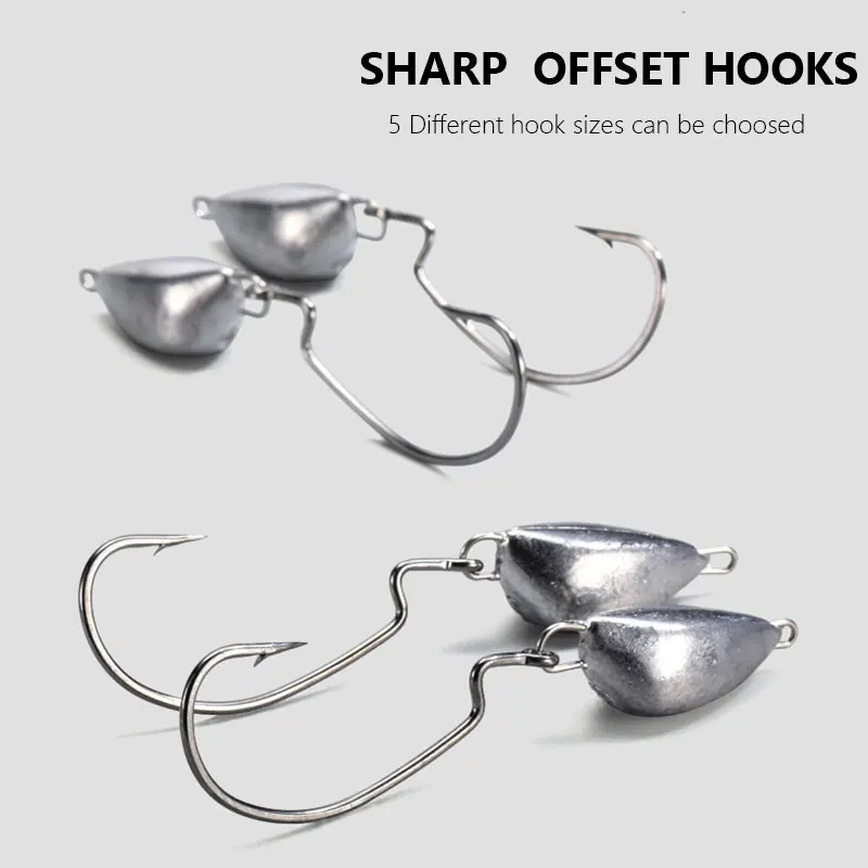 WDJYJ 5 unids/caja 3,5 g 5 g 7 g 10 g 12 g 14 g anzuelos con cabeza de plantilla de bala, peso de plomo profundo con anzuelos desplazados para aparejos de lubina de gusano suave