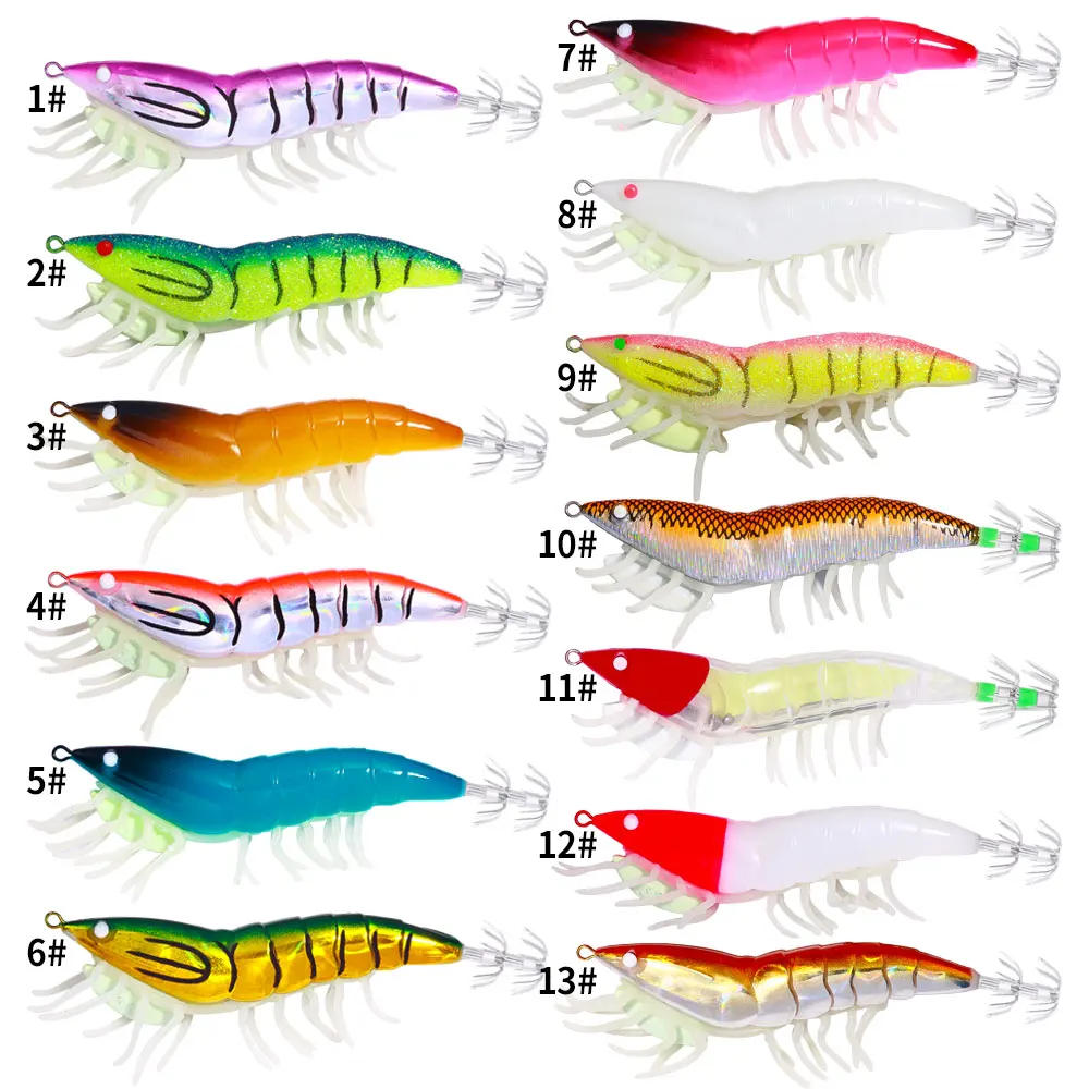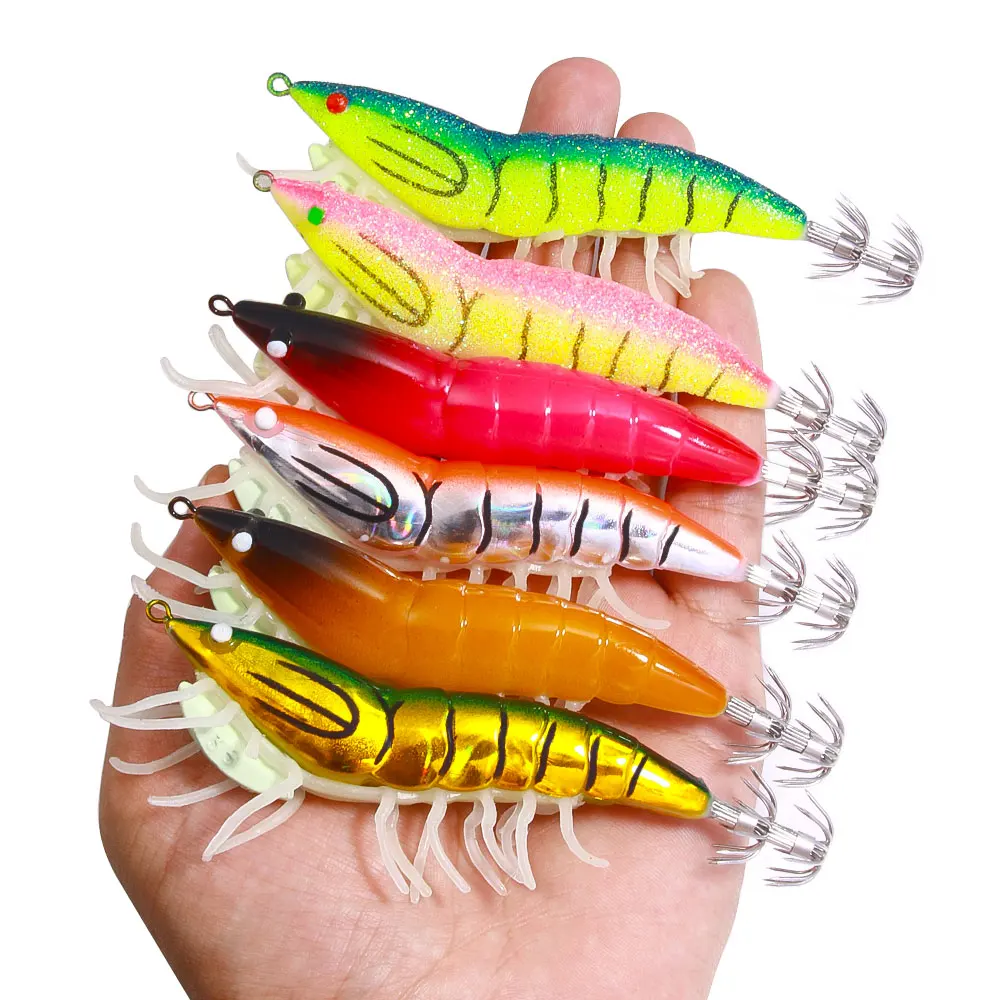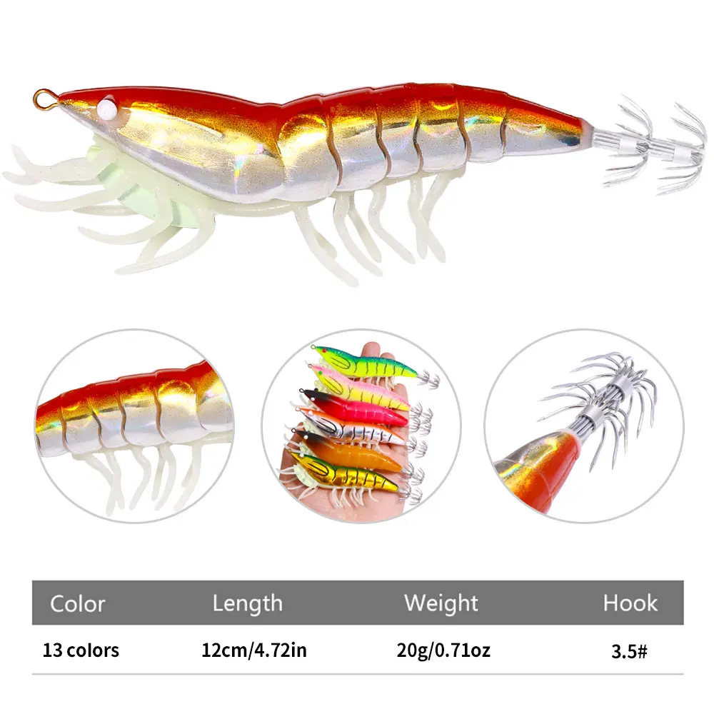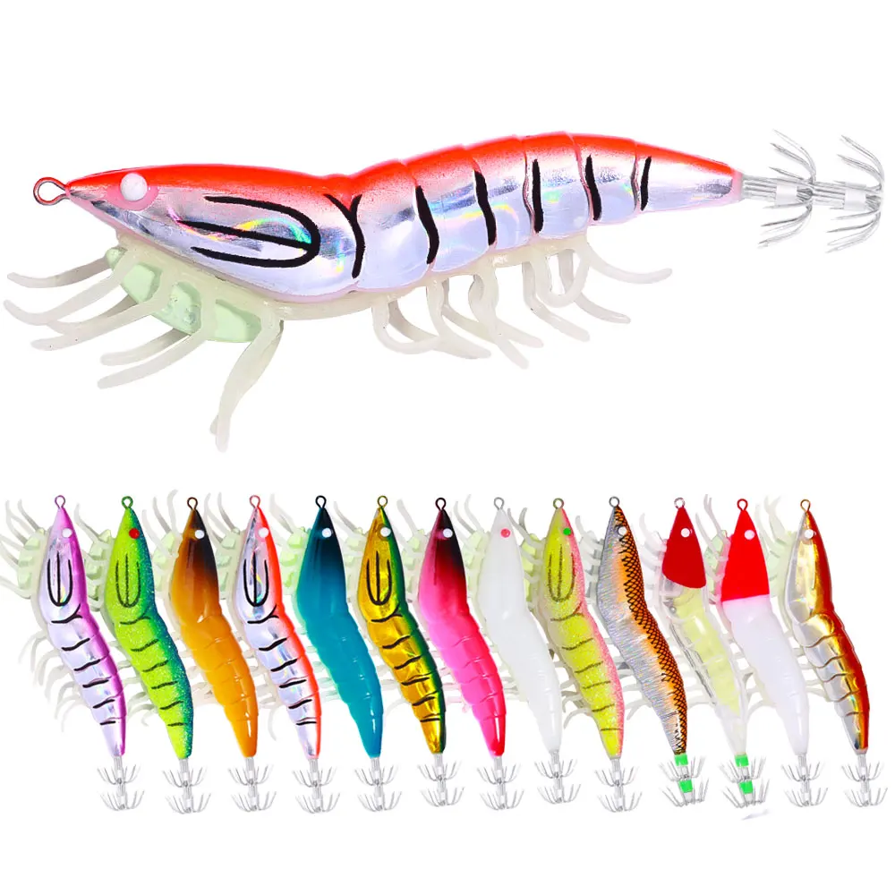 Newup Pesca señuelo luminoso de plantilla de calamar en caja 12CM-22.4G pesca cebos de madera para camarones pulpo sepia plantillas señuelos cebos duros