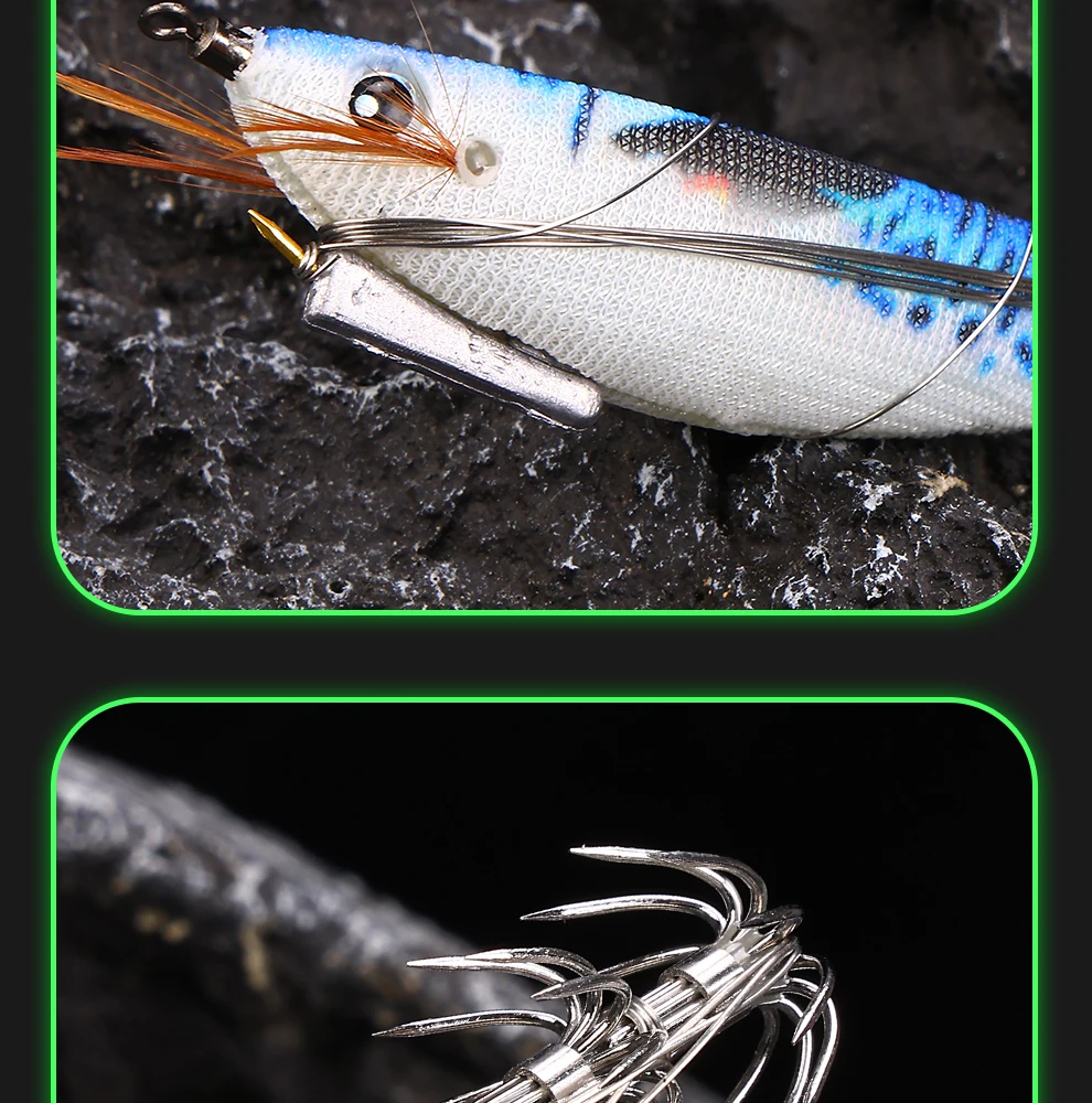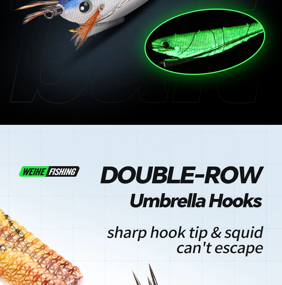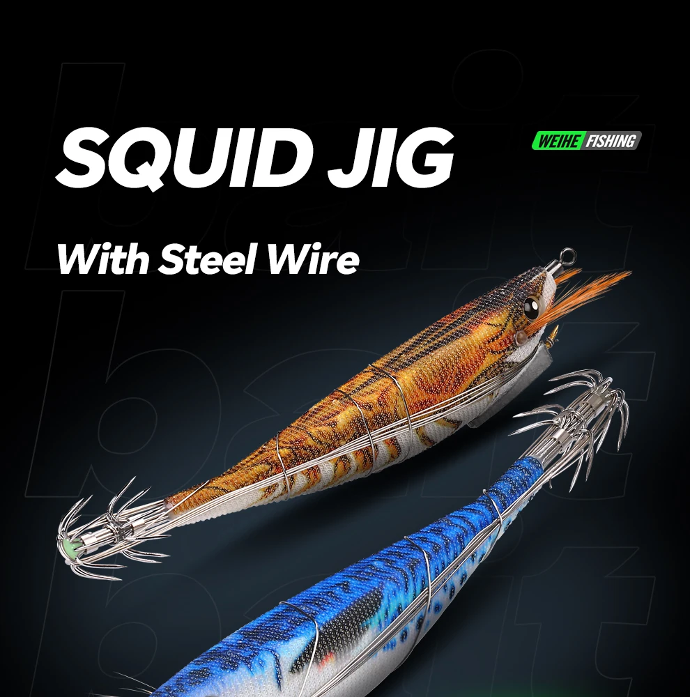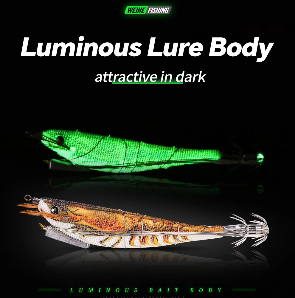 WEIHE 1 pcs/5 pcs staaldraad hout garnalen lichtgevende Luya nep aas inktvis haak contragewicht lood zeevissen