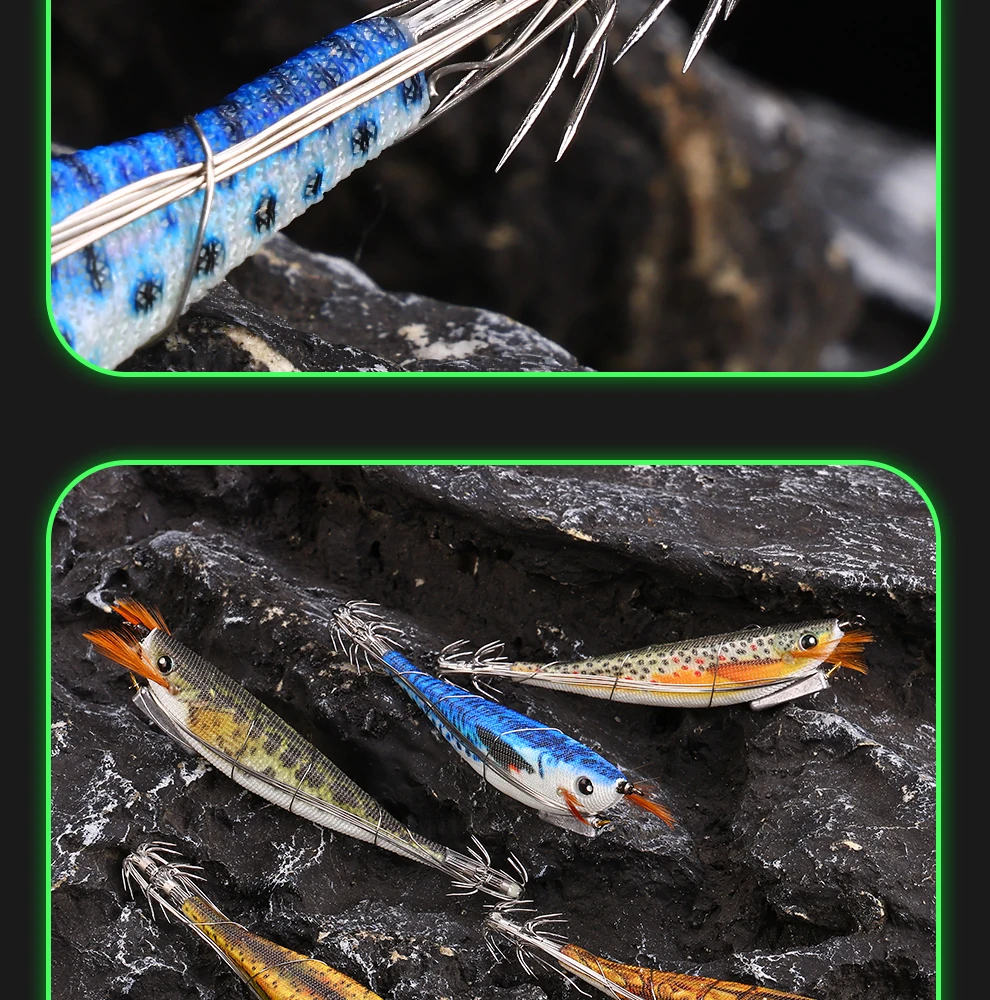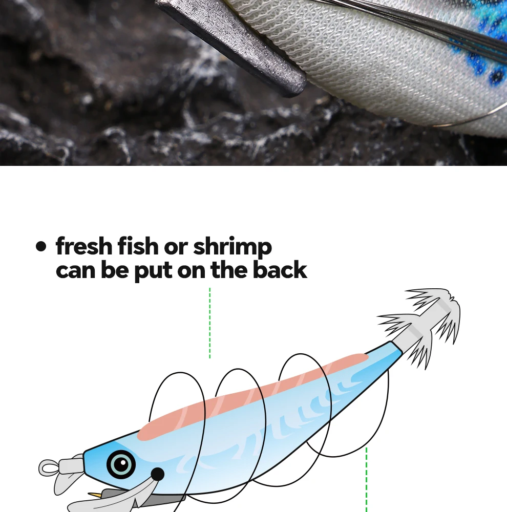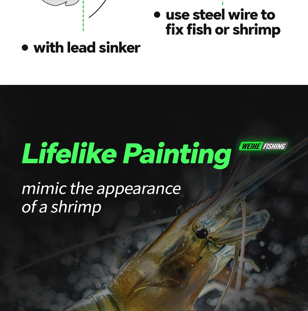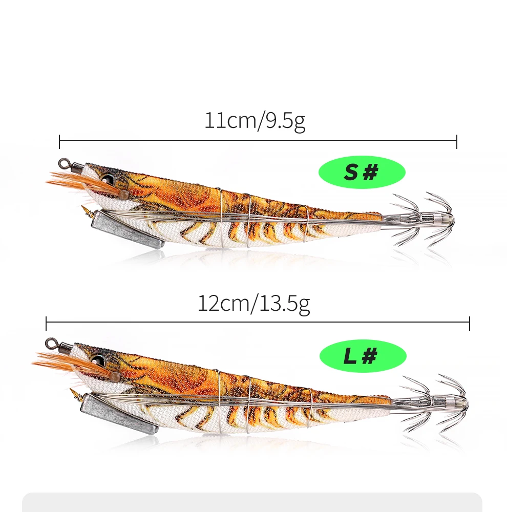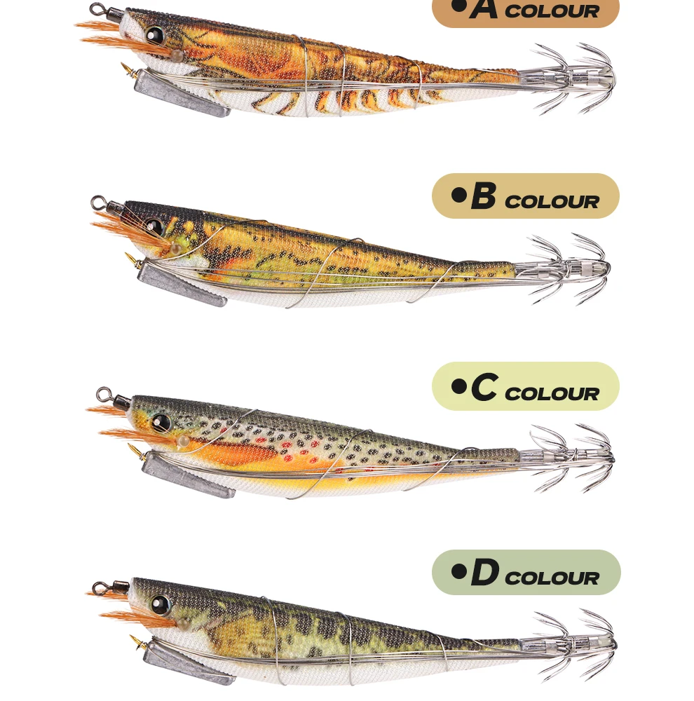 WEIHE 1 pcs/5 pcs staaldraad hout garnalen lichtgevende Luya nep aas inktvis haak contragewicht lood zeevissen