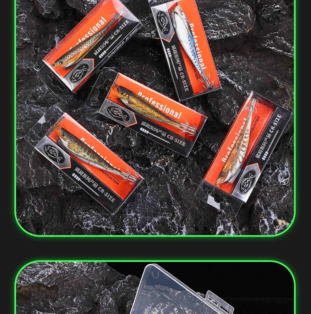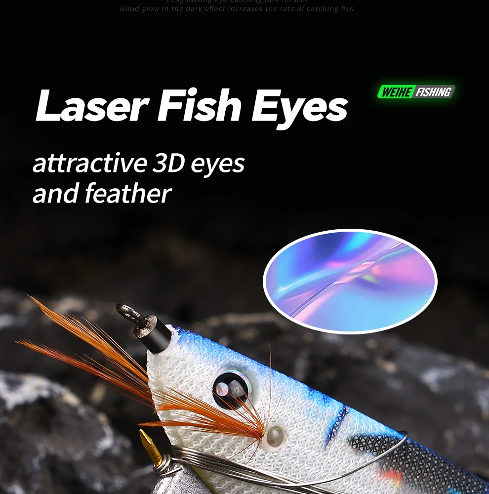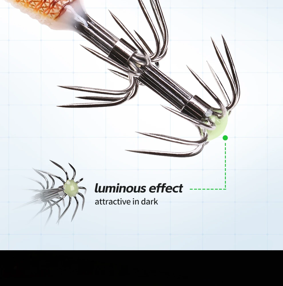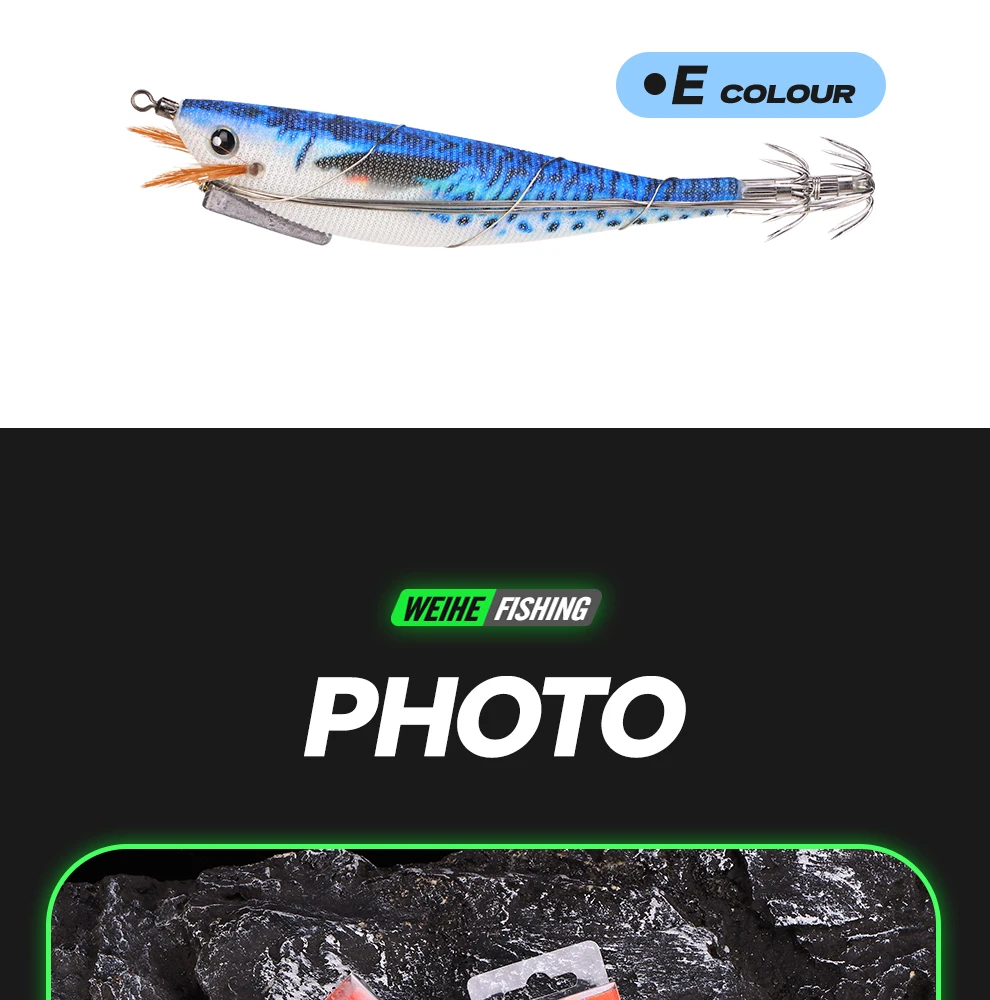WEIHE 1 pcs/5 pcs staaldraad hout garnalen lichtgevende Luya nep aas inktvis haak contragewicht lood zeevissen