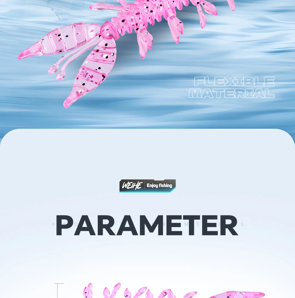 WEIHE 10 Uds. Camarones temblorosos tipo B 7,5 cm 3,2g insecto alienígena en forma de camarón cebo blando Luya