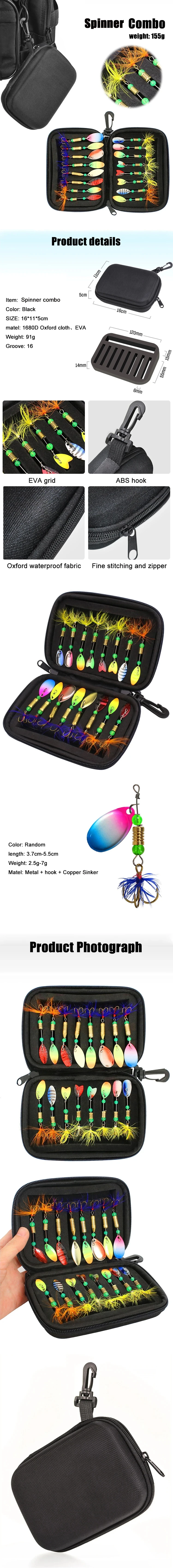 WEIHE 16 Uds B Señuelos de Pesca Spinners cebos cuchara conjunto con bolsa de aparejos trucha lubina salmón Lucio Walleye trucha Señuelos de Pesca