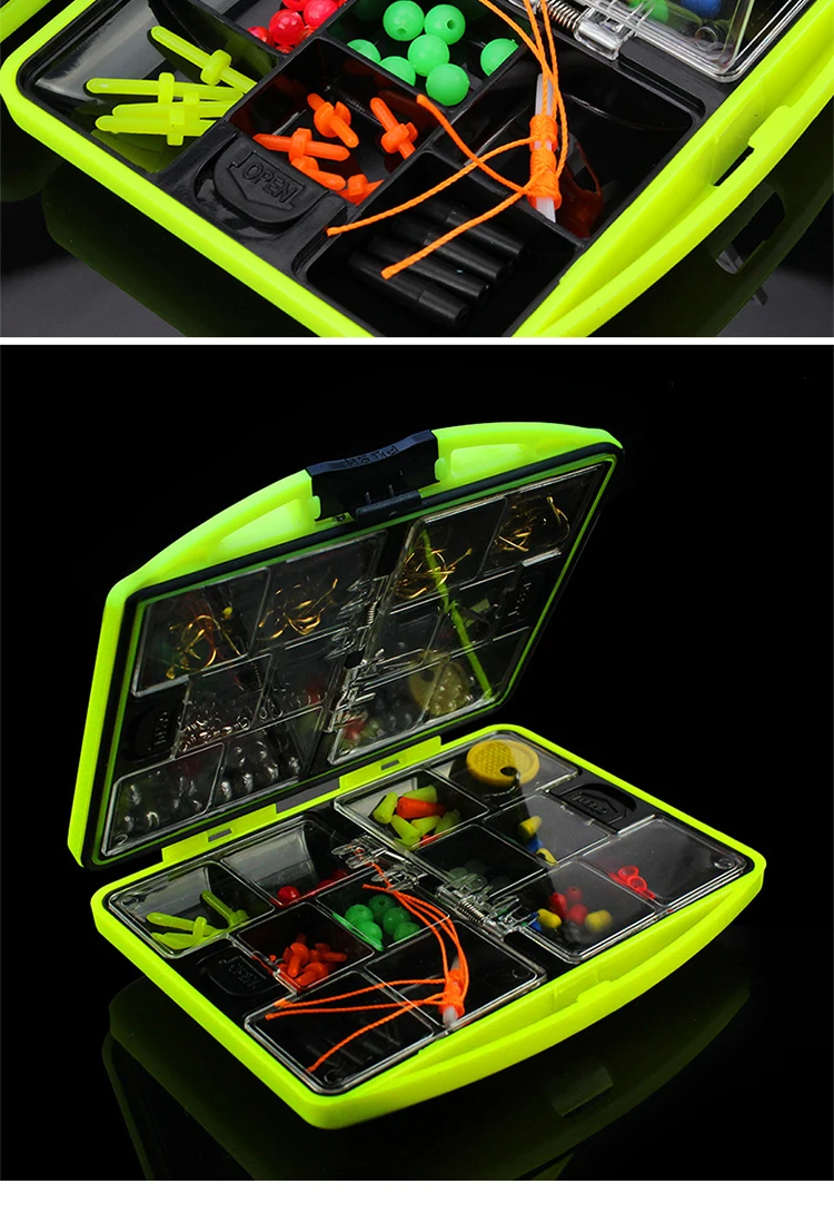2.Con 24 compartimentos individuales, los compartimentos tienen cubiertas transparentes, para que puedas guardar tus anzuelos, pesas, chupetes, moscas, etc.