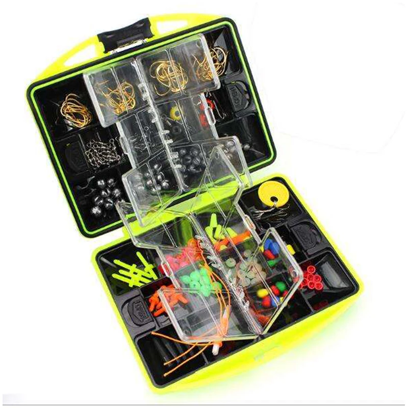 Juego de herramientas de pesca al aire libre, caja de cuentas de pesca, señuelo, cebo, anzuelo giratorio, aparejos con 24 compartimentos, caja de accesorios de pesca, 184 Uds.