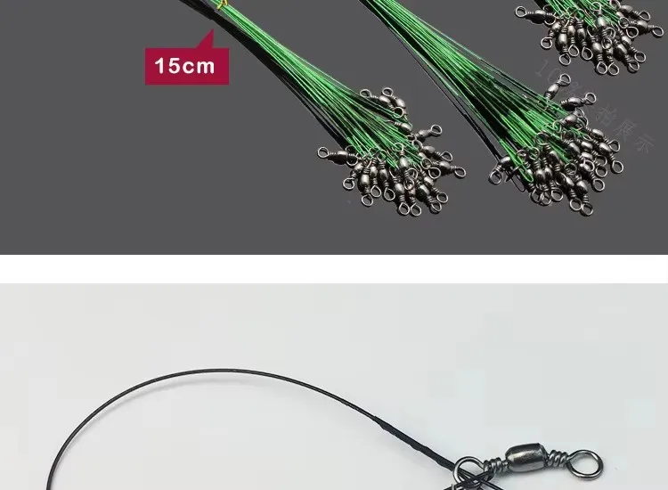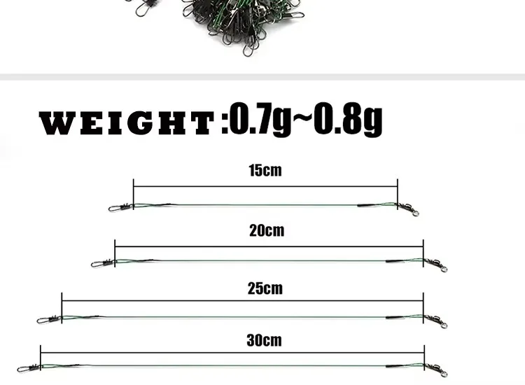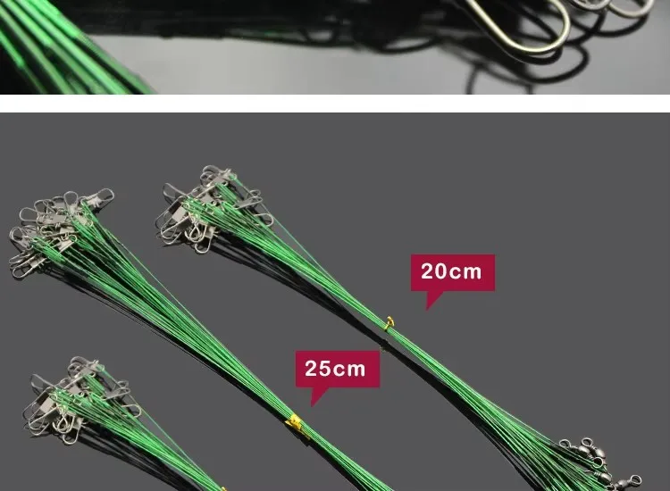 WEIHE 20 piezas líder de alambre de pesca antimordida de acero rico en carbono 15cm/20cm/25cn/30cm