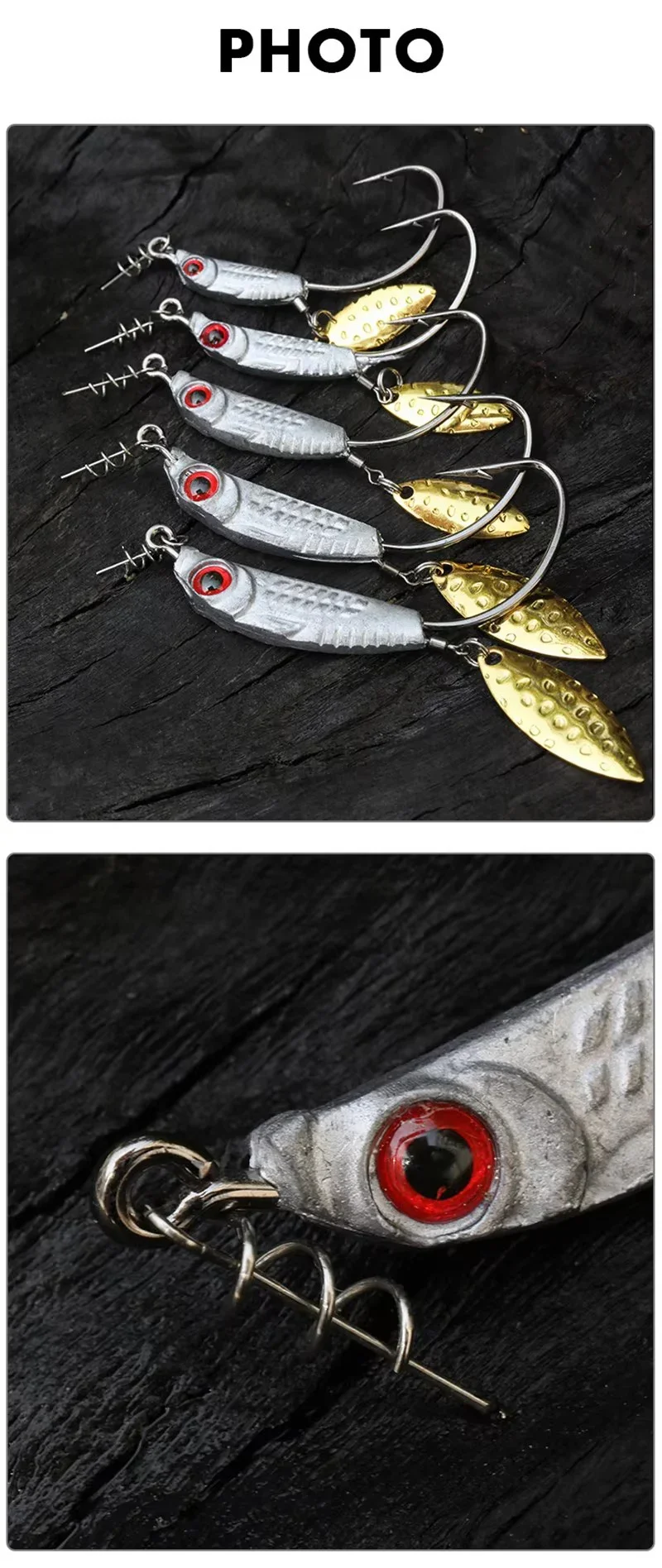 WEIHE 3g 5g 7g 10g 14g anzuelo de pesca con cabeza de anzuelo de plomo en forma de pez anzuelo de manivela con hoja Spinner para señuelo suave