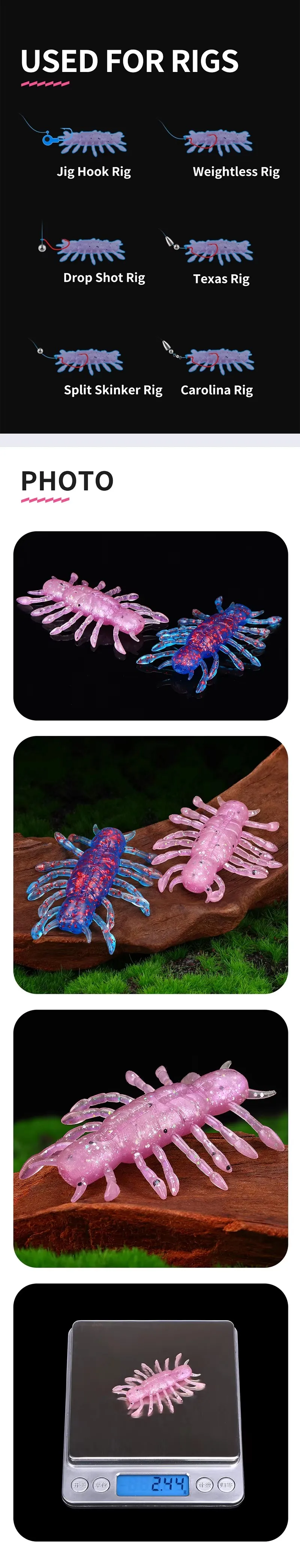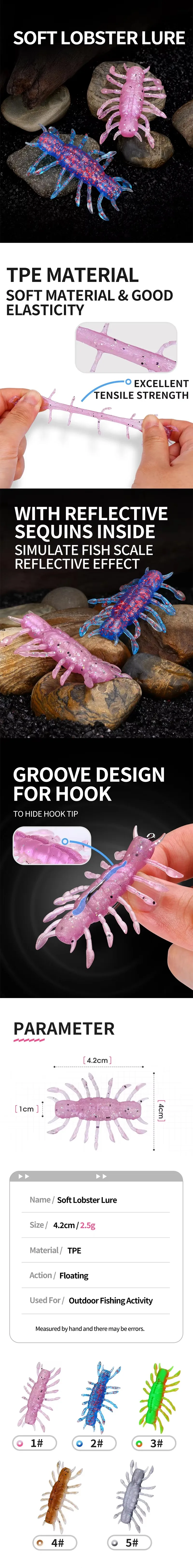 WEIHE (5 uds) 4,2 cm 5g 5 colores señuelo de pesca suave artificial cebo de pesca de langosta suave señuelos TPE con lentejuelas agua salada agua dulce