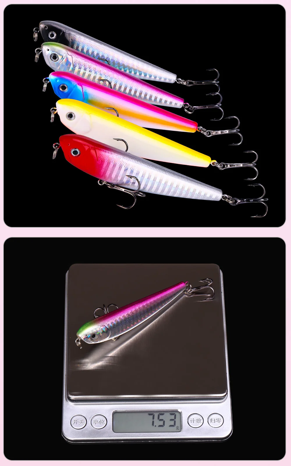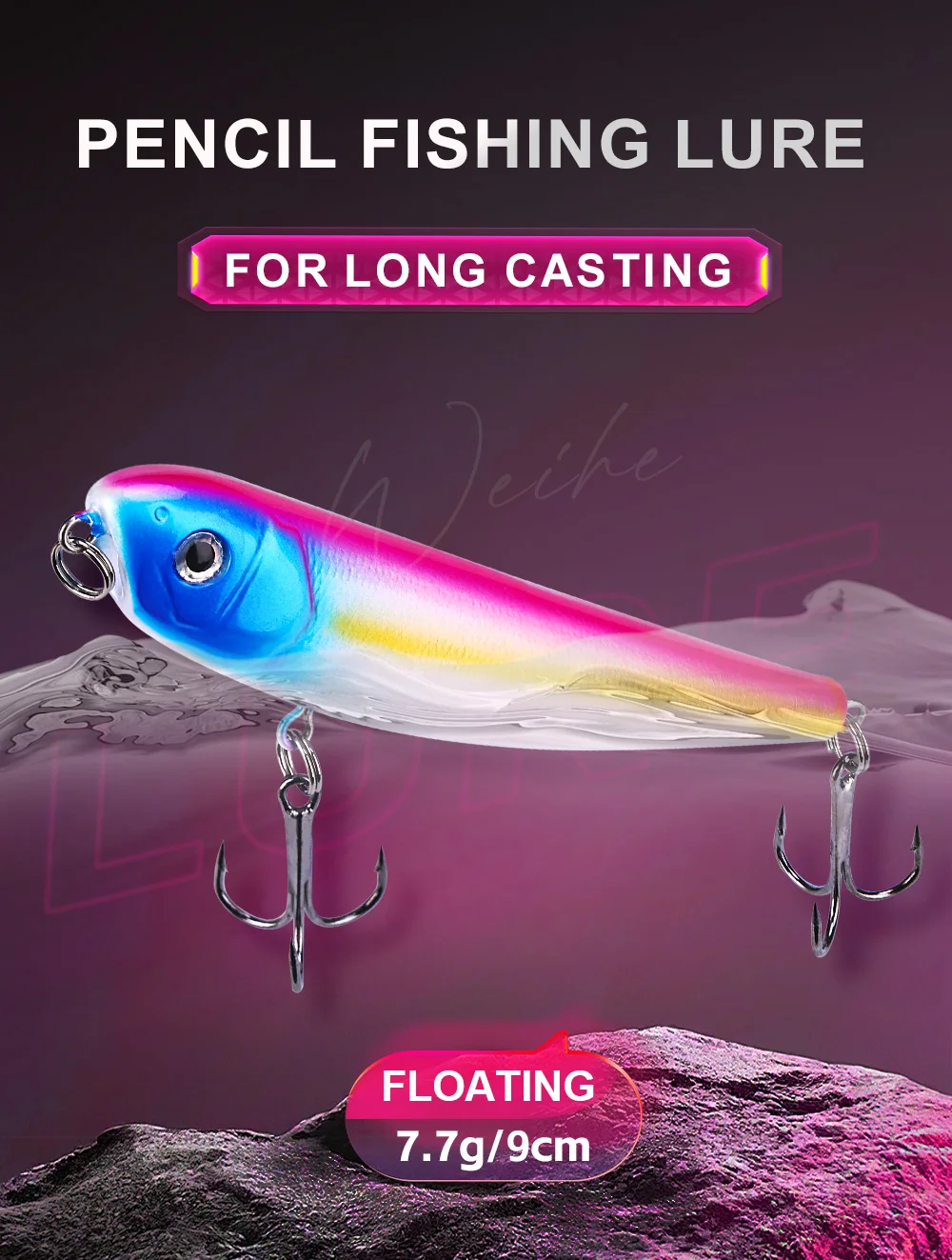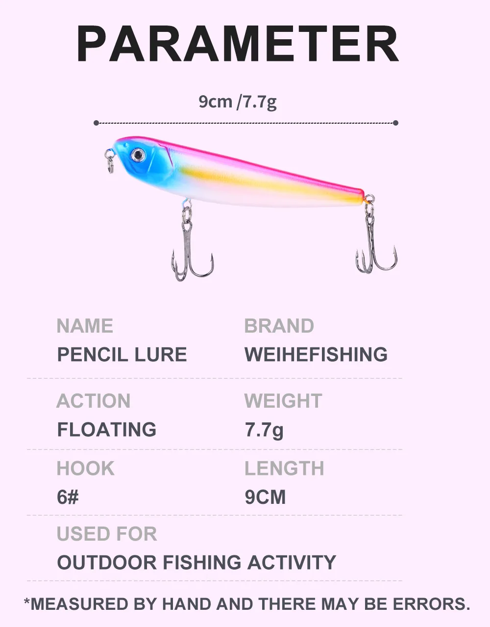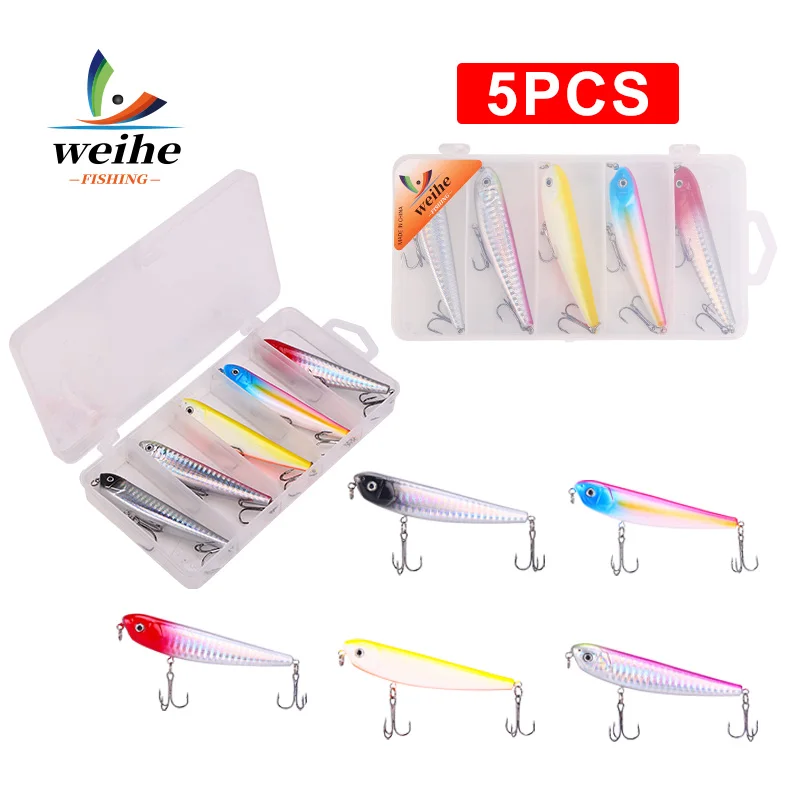 Weihe 5 uds 9cm 7,7g lápiz de cabeza redonda señuelo de pesca cebo hijo tipo pez perro con lápiz flotante de tres ganchos