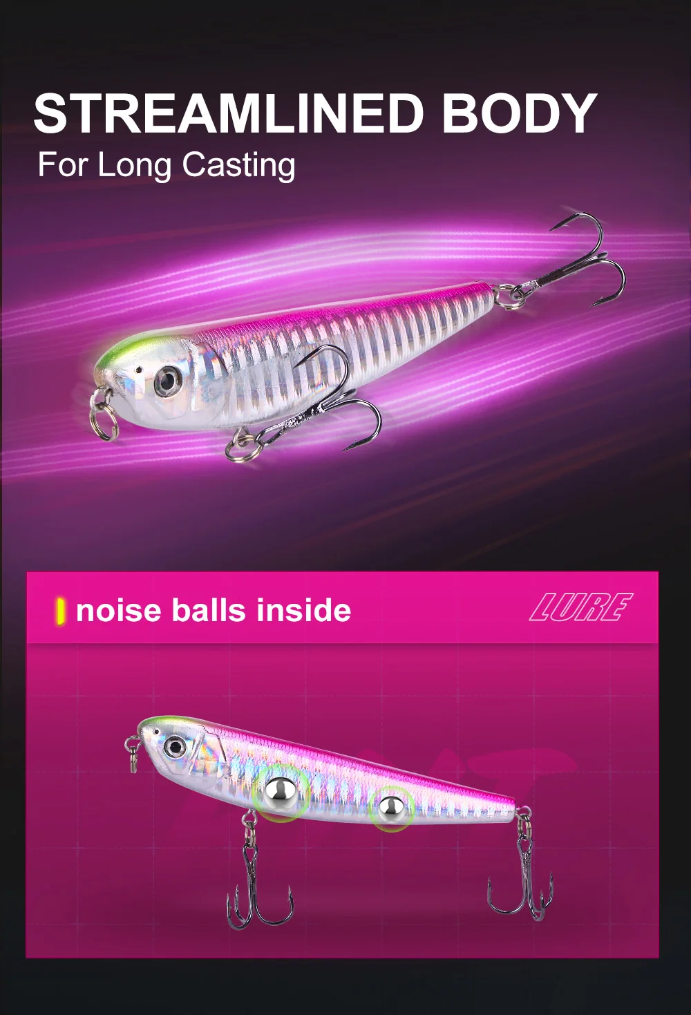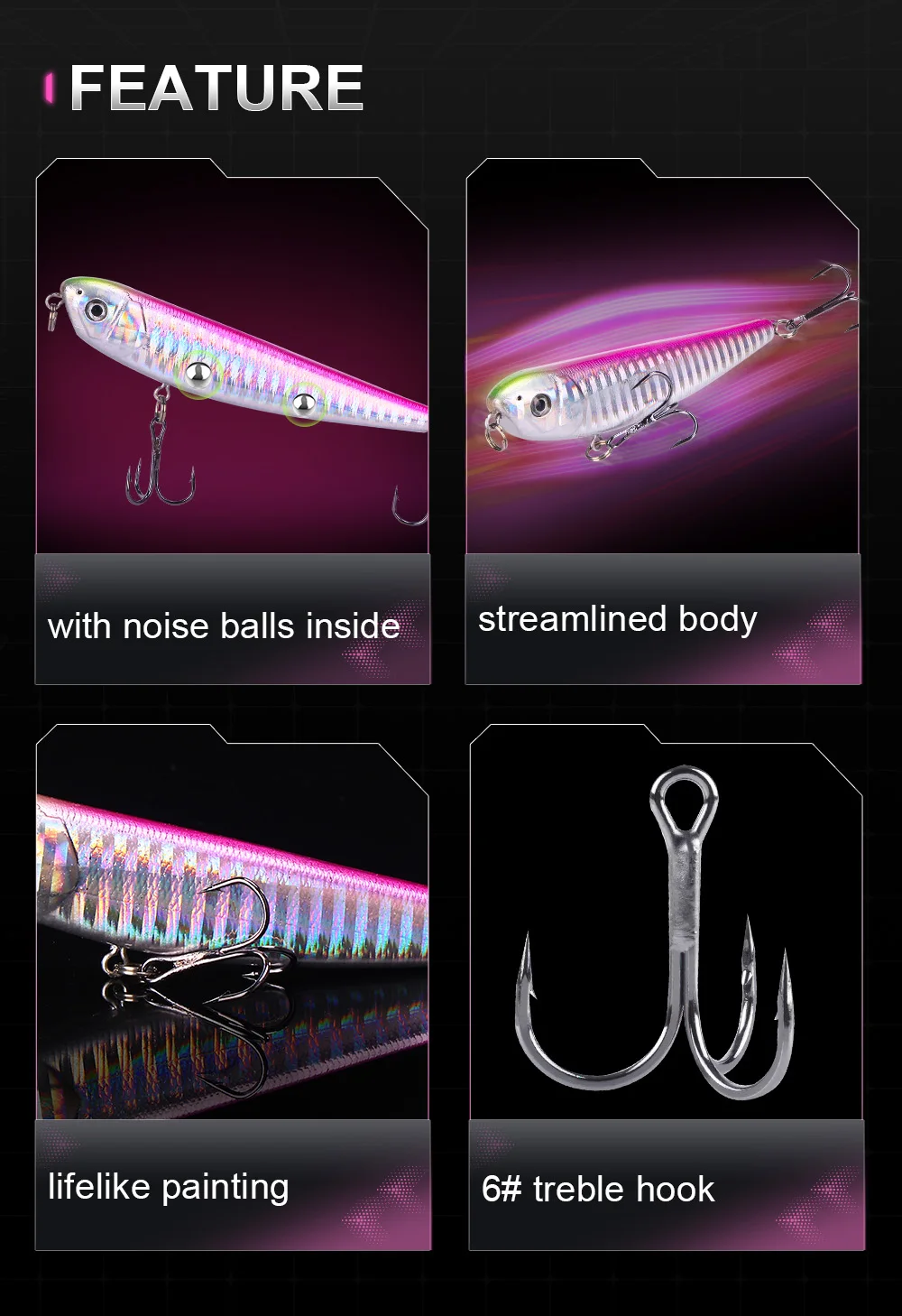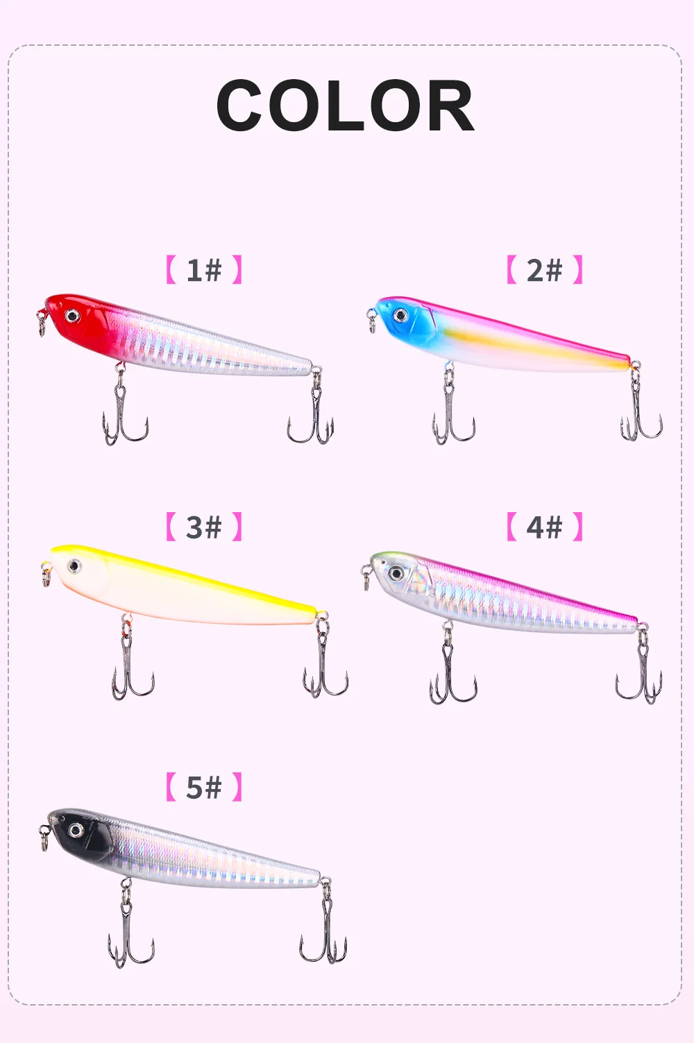 Weihe 5 uds 9cm 7,7g lápiz de cabeza redonda señuelo de pesca cebo hijo tipo pez perro con lápiz flotante de tres ganchos
