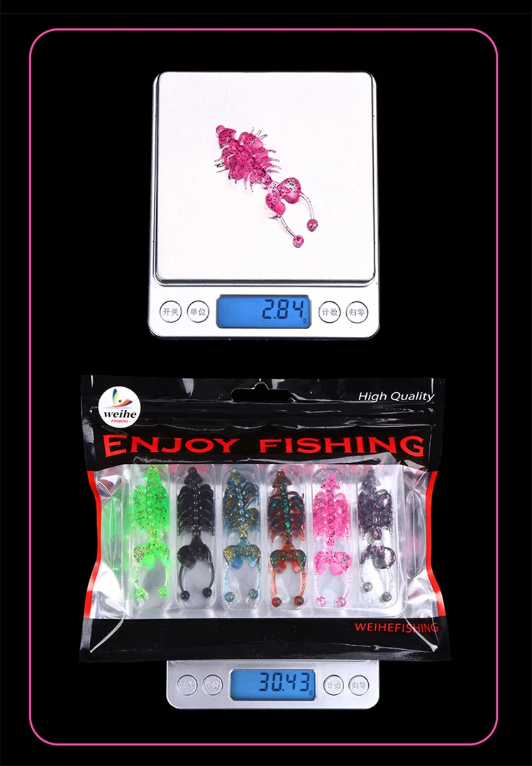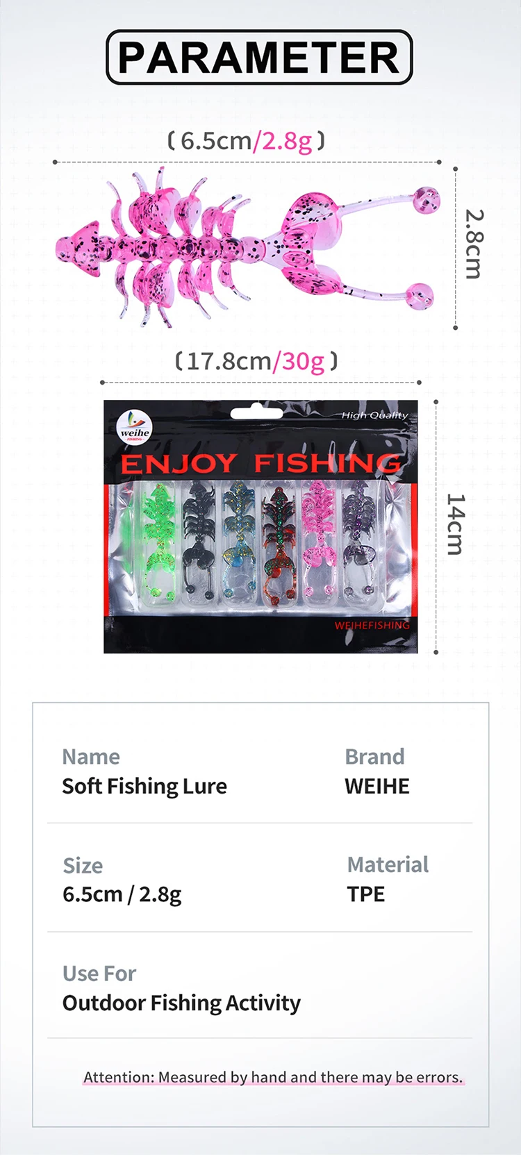 WEIHE 6 uds señuelo de pesca de camarones blandos TPE 6,5 cm/2,8g