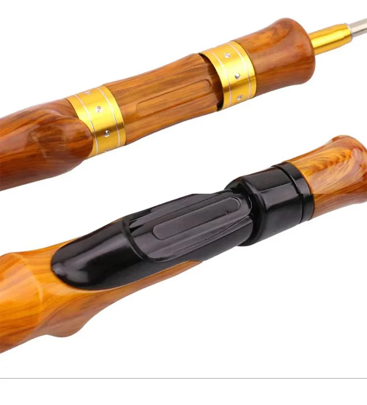 Specification: Material: carbon + imitation wood handle Size: about 62cm/24.4in Weight: 100g 116g Telescopic size: about 41cm/16.14in Style: 2 Segment poles Model: Straight handle, Gun handle Application: winter fishing, shrimp fishing, raft fishing, children's use, etc.
