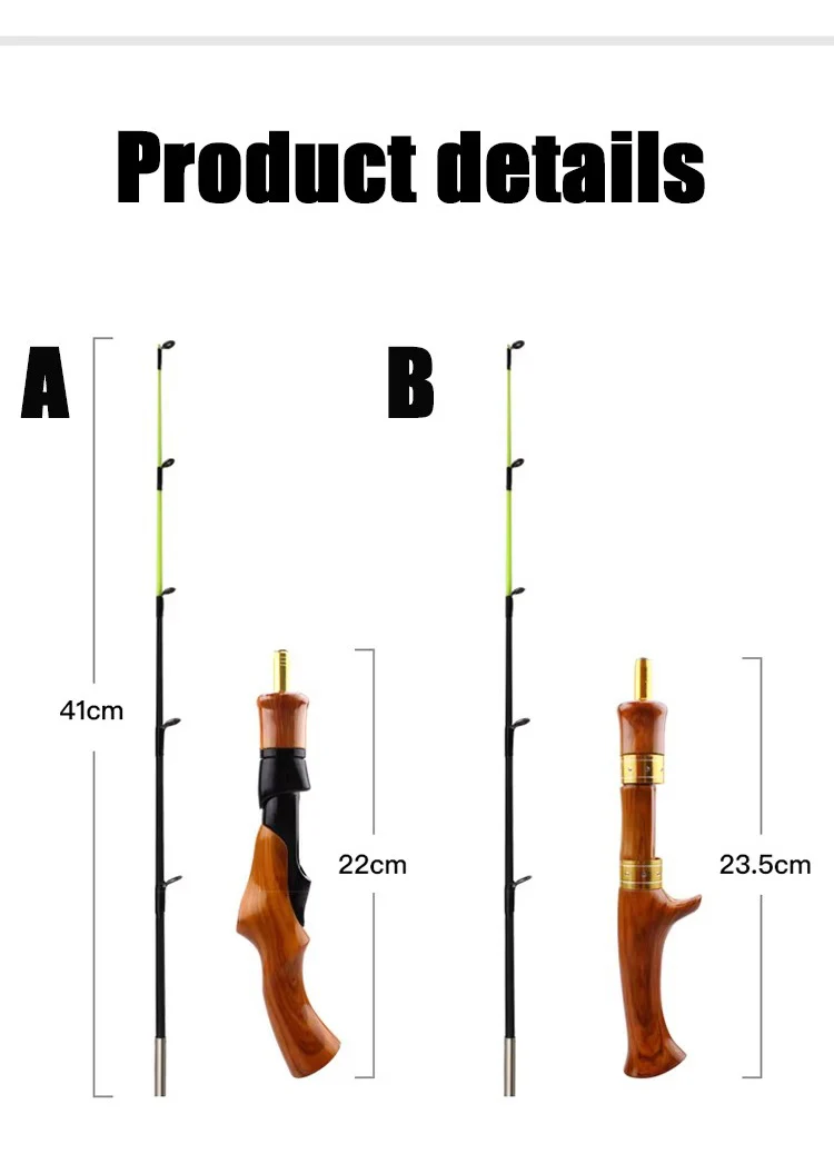 Winter Shrimp Ice Fishing Rod Pole Portable Winter Fishing Rods Spinning Casting 2 Sections Fish Pole 62cm 62cm Ice Fishing Rod Portable Carbon Wooden Handle River Shrimp Carp Fishing Pole Winter Fish Tackle Feature: Flattened pole tip, metal explosion-proof joint at pole tip end. It is designed with soft wood-imitation, making handle comfortable.