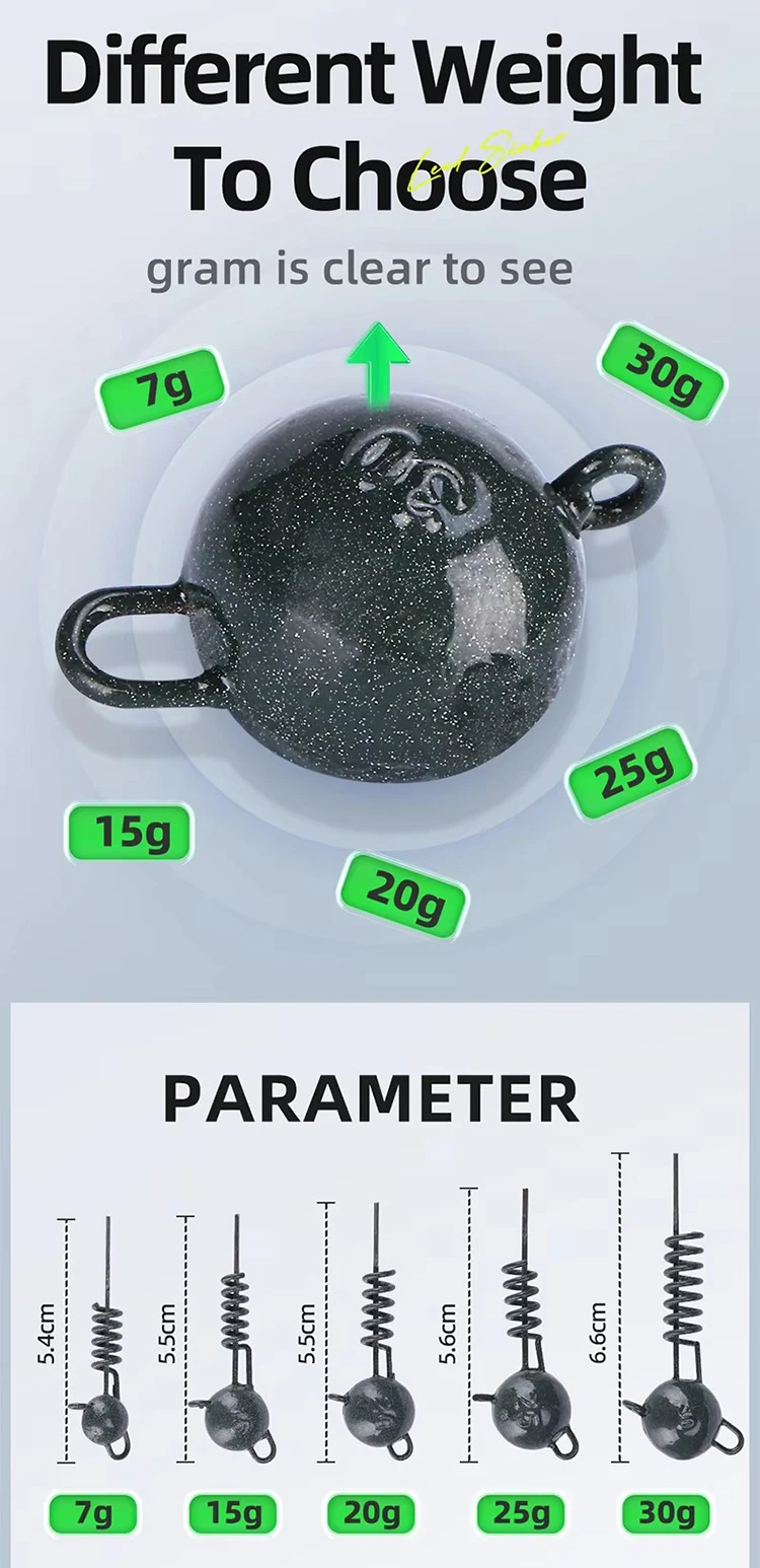 Información del productoNombre del producto: Plomo de plomo con tornilloMaterial del producto: plomo + acero inoxidable.Color: como imagenPeso: 7g/15g/20g/25g/30g
