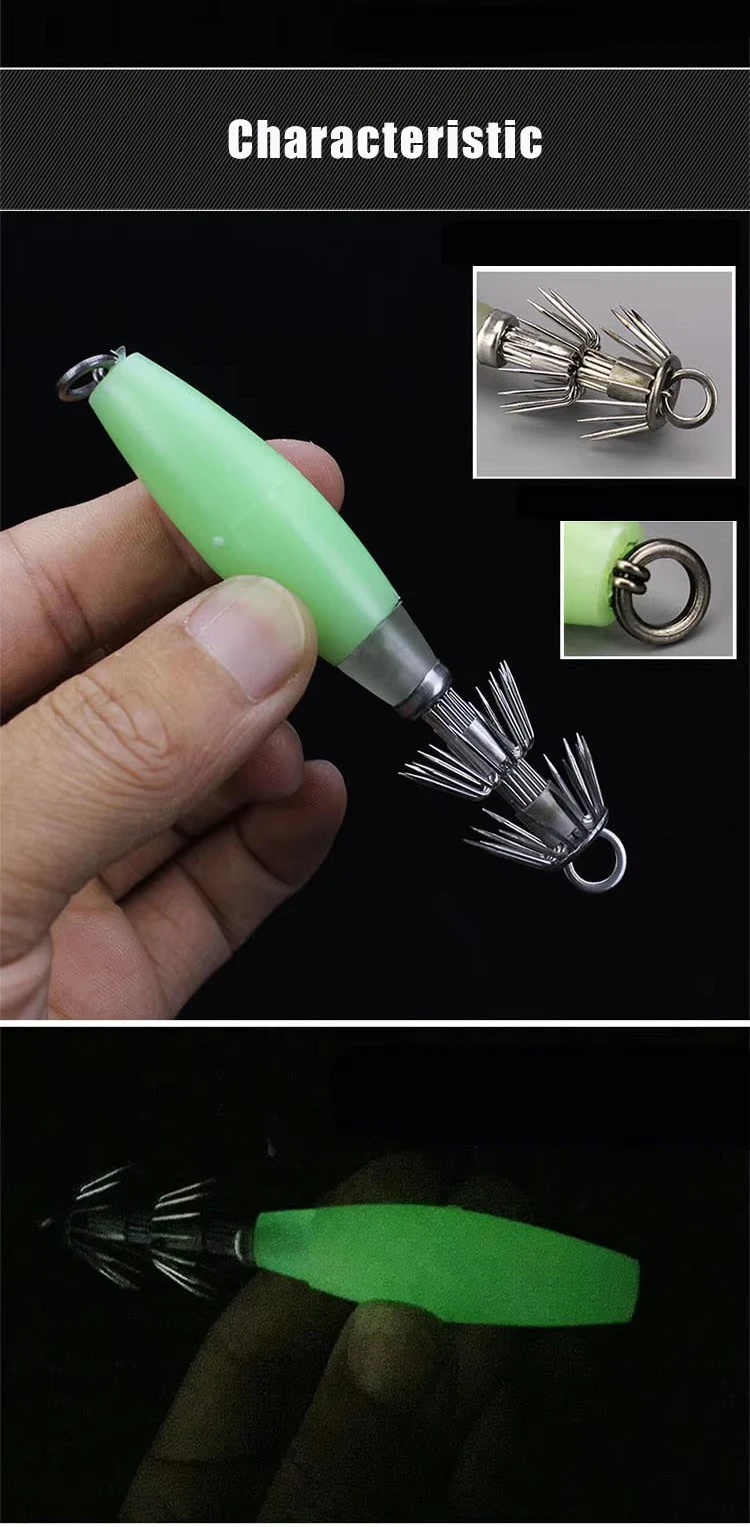 Este señuelo de pesca sirve para pescar peces de manga, calamares, pulpos y Sepia en agua dulce o salada.