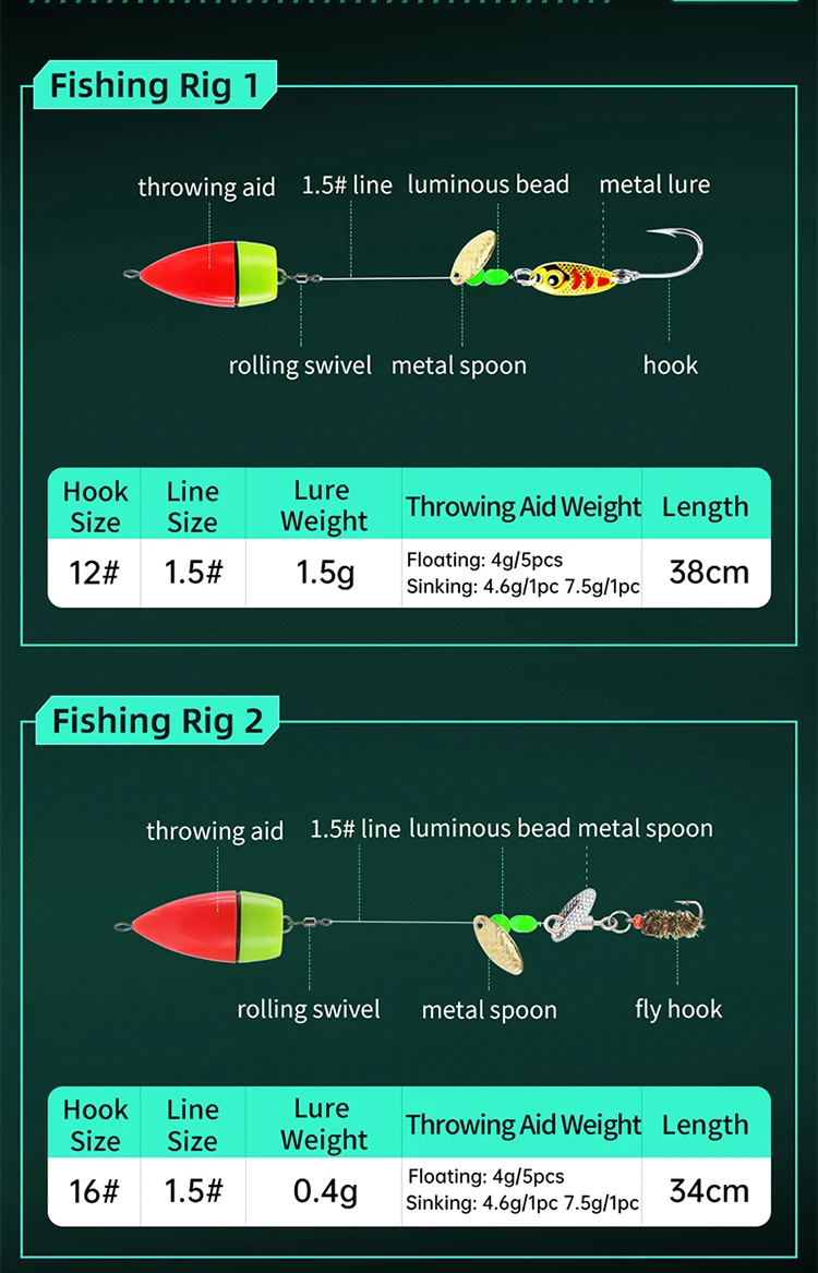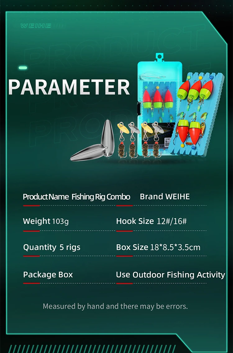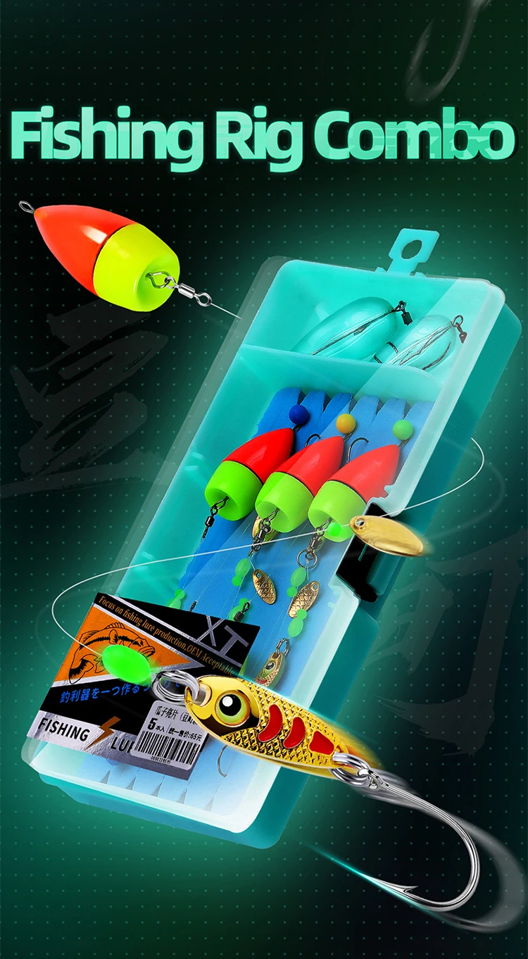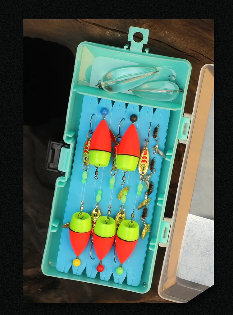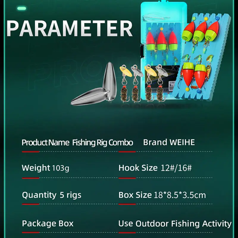WEIHE-aparejo de pesca combinado Ready Rigs con señuelo de Metal flotador 14 #16 #, caja de aparejos de gancho, accesorio de pesca