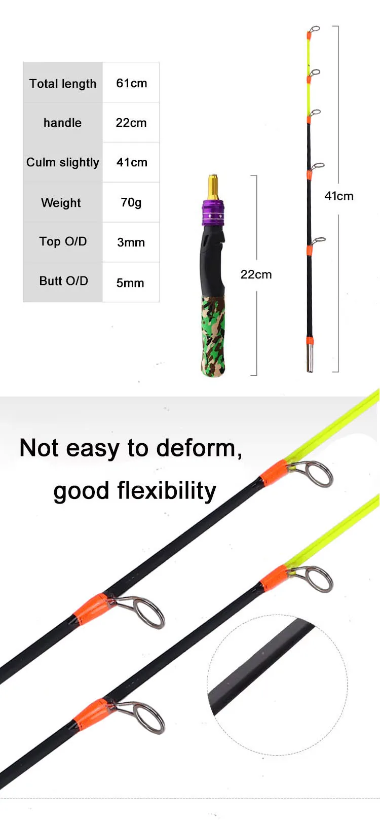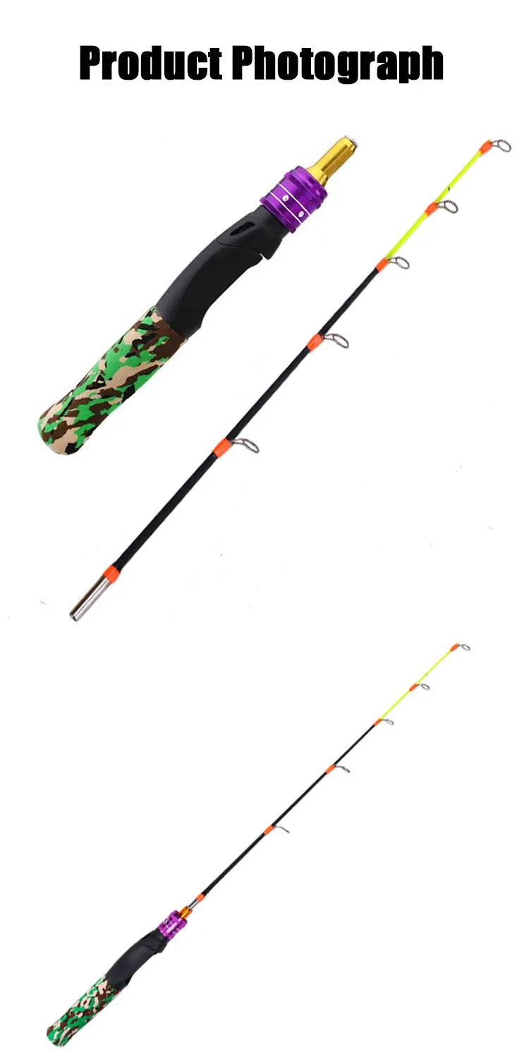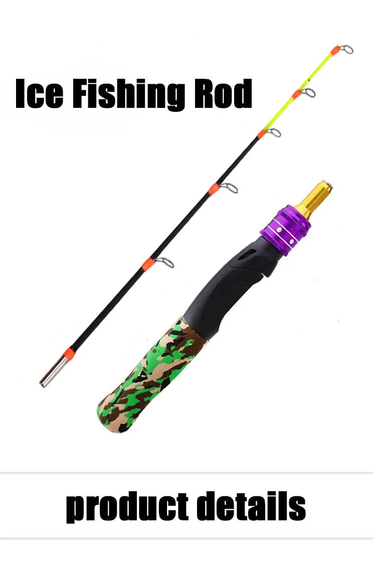 Caña de pescar en hielo portátil con mango de madera de carbono, caña de pescar de carpa y camarón de río, aparejos de pesca de invierno