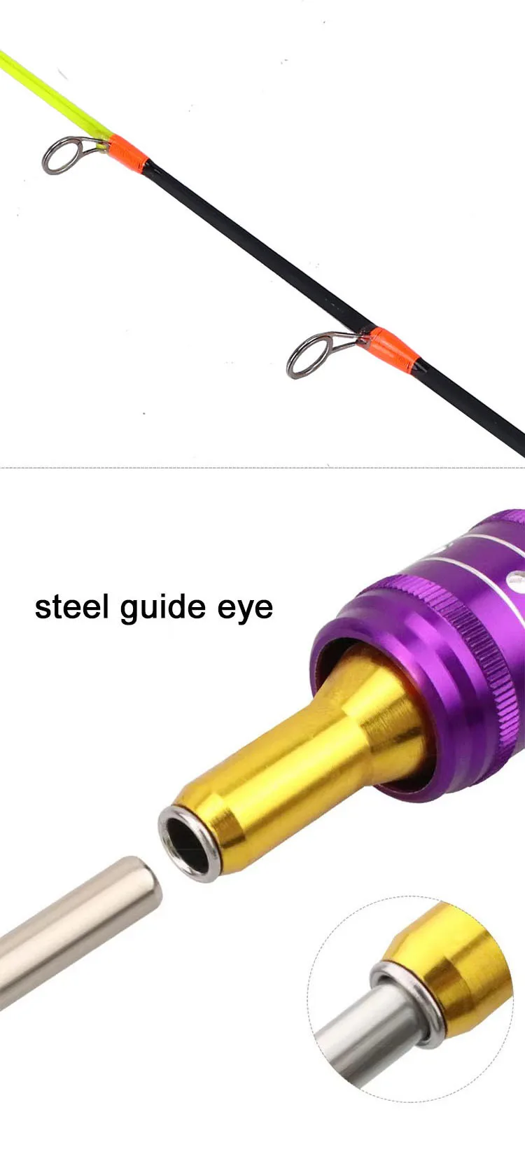 Caña de pescar en hielo de 61cm, mango de carbono EVA, balsa giratoria de invierno, caña para pescar camarones y niños