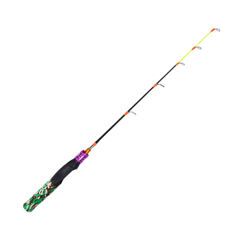 Caña de pescar en hielo portátil con mango de madera de carbono, caña de pescar de carpa y camarón de río, aparejos de pesca de invierno