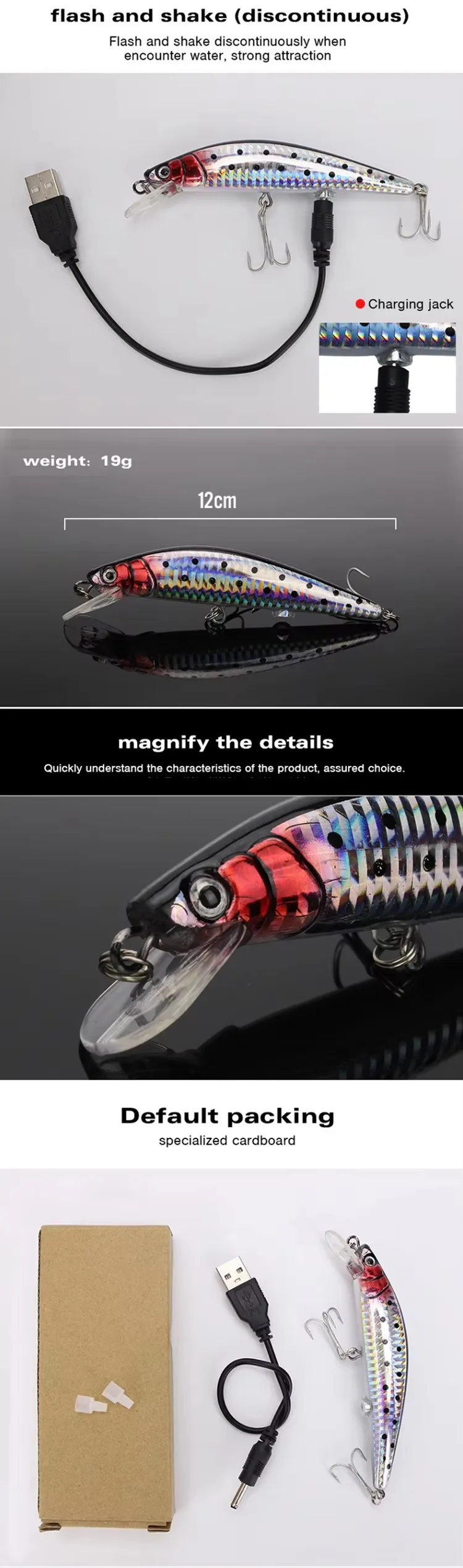 Señuelos de pesca con carga USB, cebo duro Artificial con láser para ojos, Pesca que se hunde Wobblers, Crankbaits, aparejos de lubina, cebo de natación automáticoSeñuelo de pesca electrónico USB de alta calidad al por mayor, señuelo duro