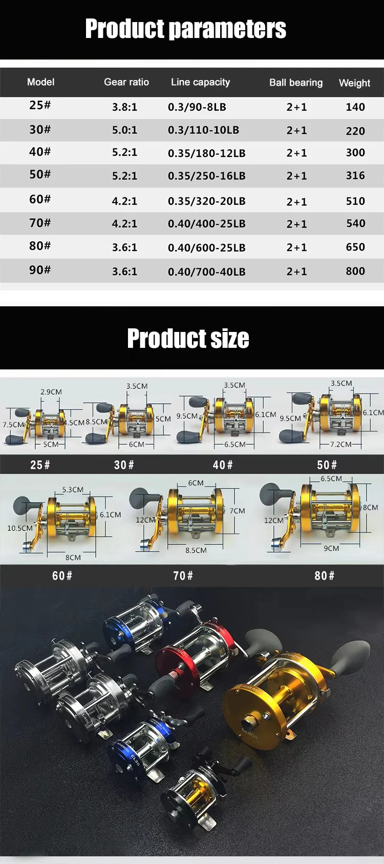 WEIHE-carrete de arrastre de pesca con mango de potencia cerrado, serie CL40, superventas