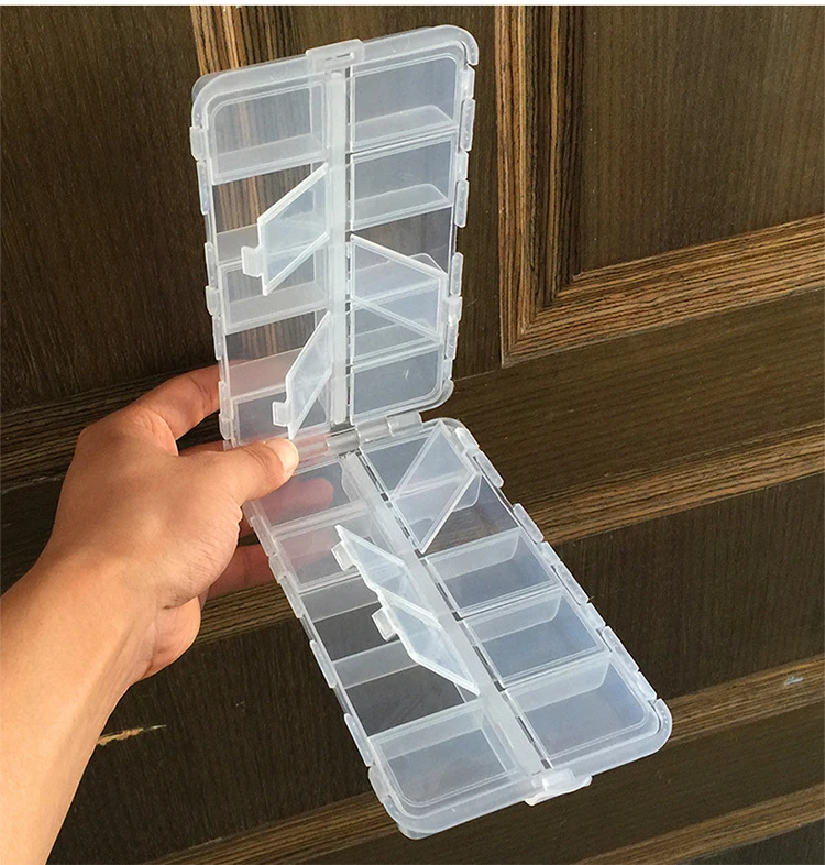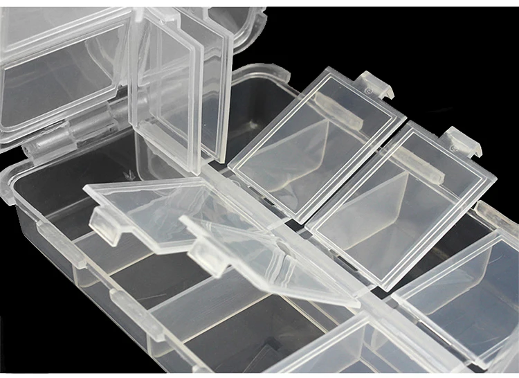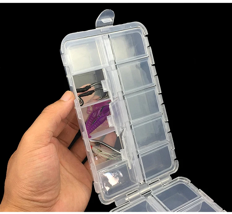 100% nuevo y de alta calidad Diseño portátil, cómodo de llevar Con 10 compartimentos individuales, los compartimentos tienen cubiertas transparentes. Para que pueda guardar sus anzuelos, pesas, disparos, moscas, etc. ¡Limpio y ordenado y guárdalo en tu bolsillo o bolsa de pesca! Hecha de plástico resistente, esta caja de bolsillo es fácil de mantener limpia y duradera para un uso prolongado.