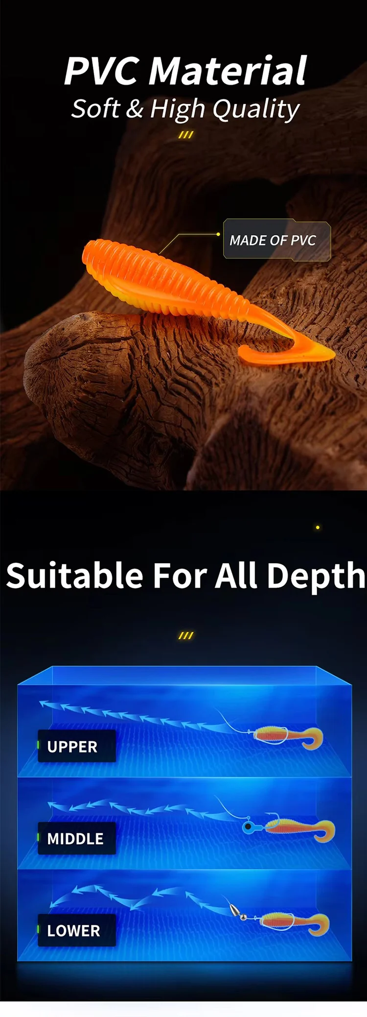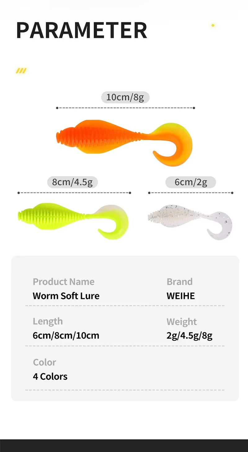 WEIHE-señuelo de pesca de plástico suave, 5 uds., 6cm, 8cm, 10cm, cebo de gusano Artificial para agua dulce y salada, señuelos flotantes para trucha hechos de PVC