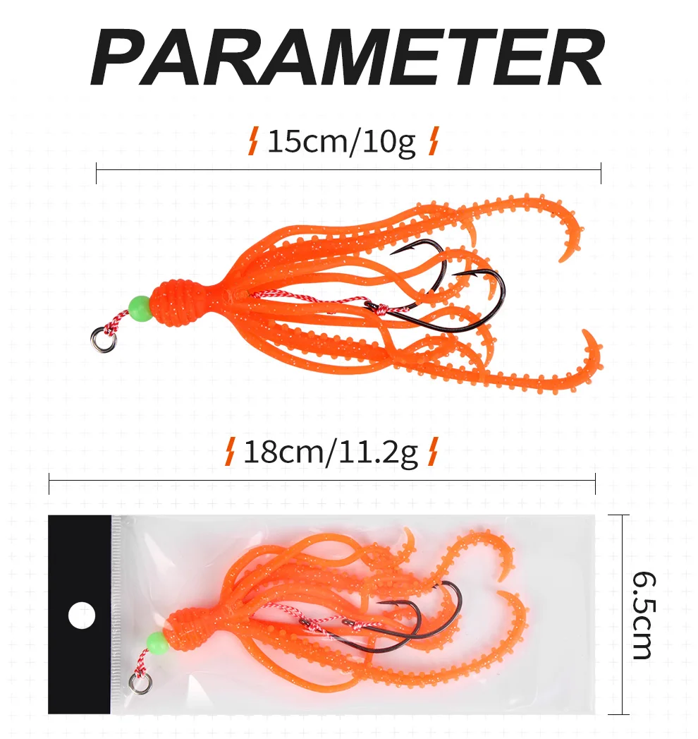 WEIHE-señuelo de pulpo suave, Mini calamar con anzuelo, 15cm, 10g, pesca en el mar, cebo de pulpo, cebo de pez TPE