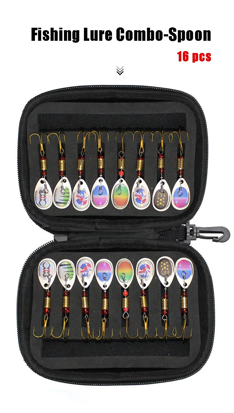 WEIHE-Señuelos de Pesca con Cuchara de Metal, cebo giratorio Wobblers, señuelo de lentejuelas, Combo de Pesca de plumas, 3,7g, 16 Uds.