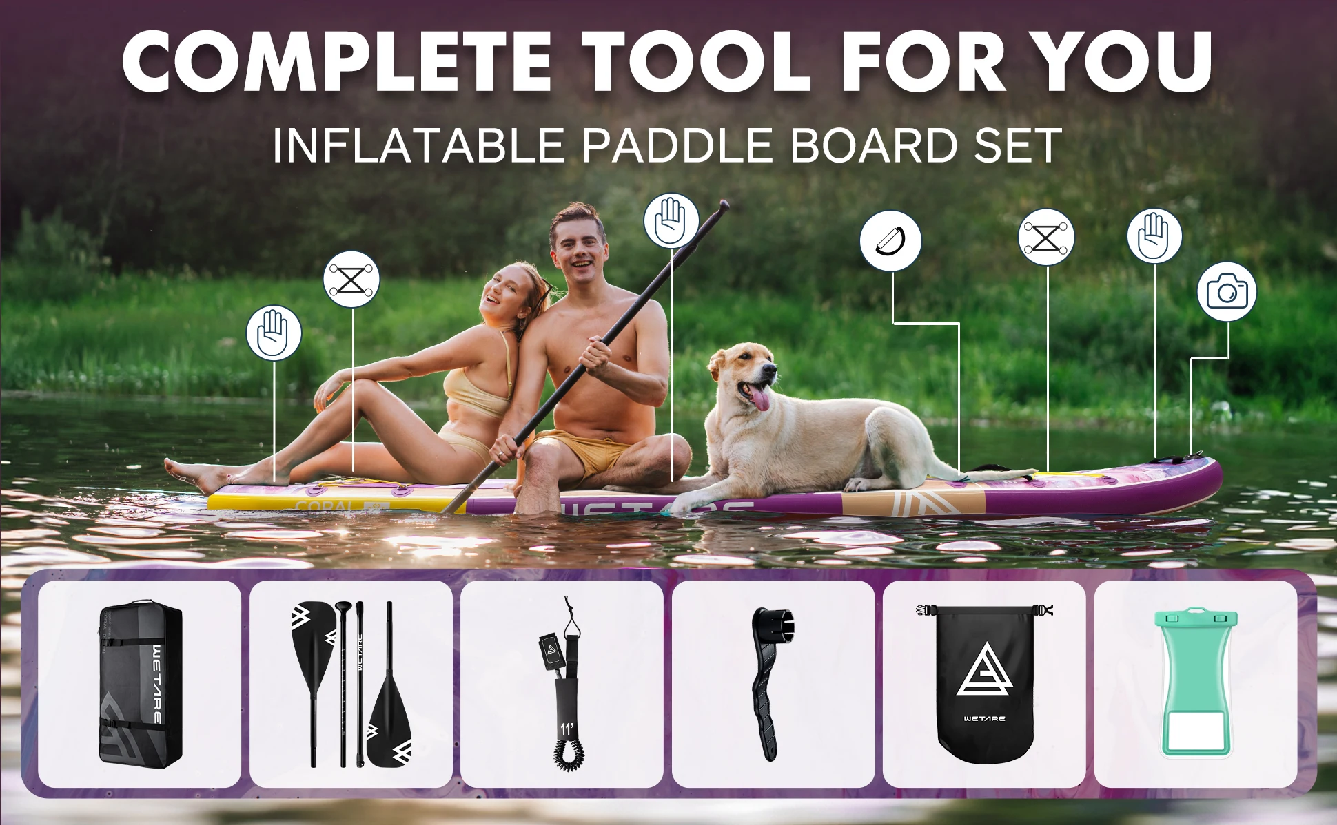 WETARE tabla de Paddle inflable SUP impermeable 11'6''x35''x6''Pesca acuática de estilo de pie para adultos con accesorios SUP сап soltрд